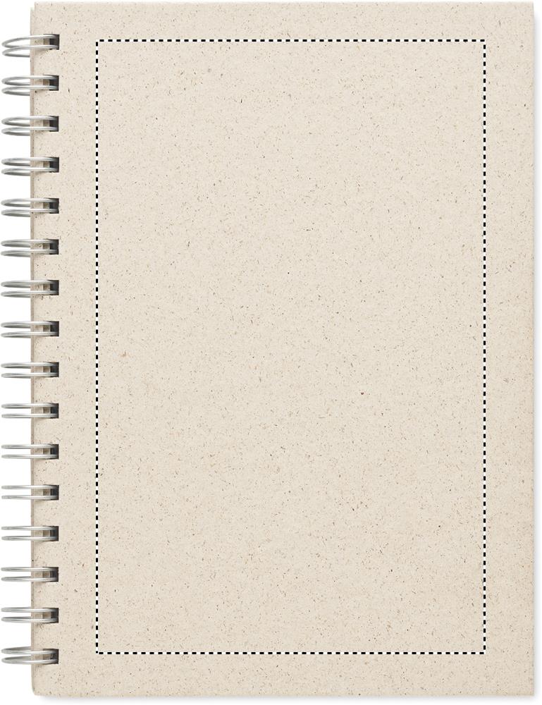 A5 žolės popierinis sąsiuvinis. Žolės popieriaus kietas viršelis. Dvigubas laidas. 160 linijinio žolės popieriaus lapų (80 lapų). 95 gsm popierius. Žolės popierius, kuriame yra 40% žolės pluošto.