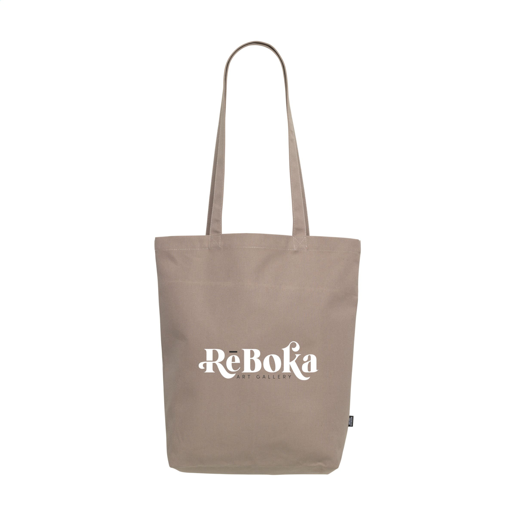 Oho! Pirkinių krepšys ilgomis rankenomis. Šis krepšys pagamintas iš ypač sunkios kokybės perdirbtos medvilnės drobės (260 g/m²). GRS sertifikuota. Iš viso perdirbtos medžiagos: 92%. Talpa apytiksl. 15 litrų.