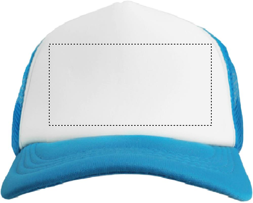 5 skydų sunkvežimių dangtelis iš poliesterio 140-150 gr/m2 su reguliuojamu plastikiniu užsegimu. Baltas priekinis skydelis ir spalvotas poliesterio trikotažo skydelis su putplasčio pagrindu. Kitos spalvos tinklelio plokštės. Dydis 7 1/4.