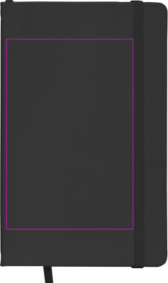 DIN A5 piezīmju grāmatiņa samtainā PU vāciņā ar 160 neitrālām lapām. Mēs uzdrukājam jūsu logotipu uz vāka.