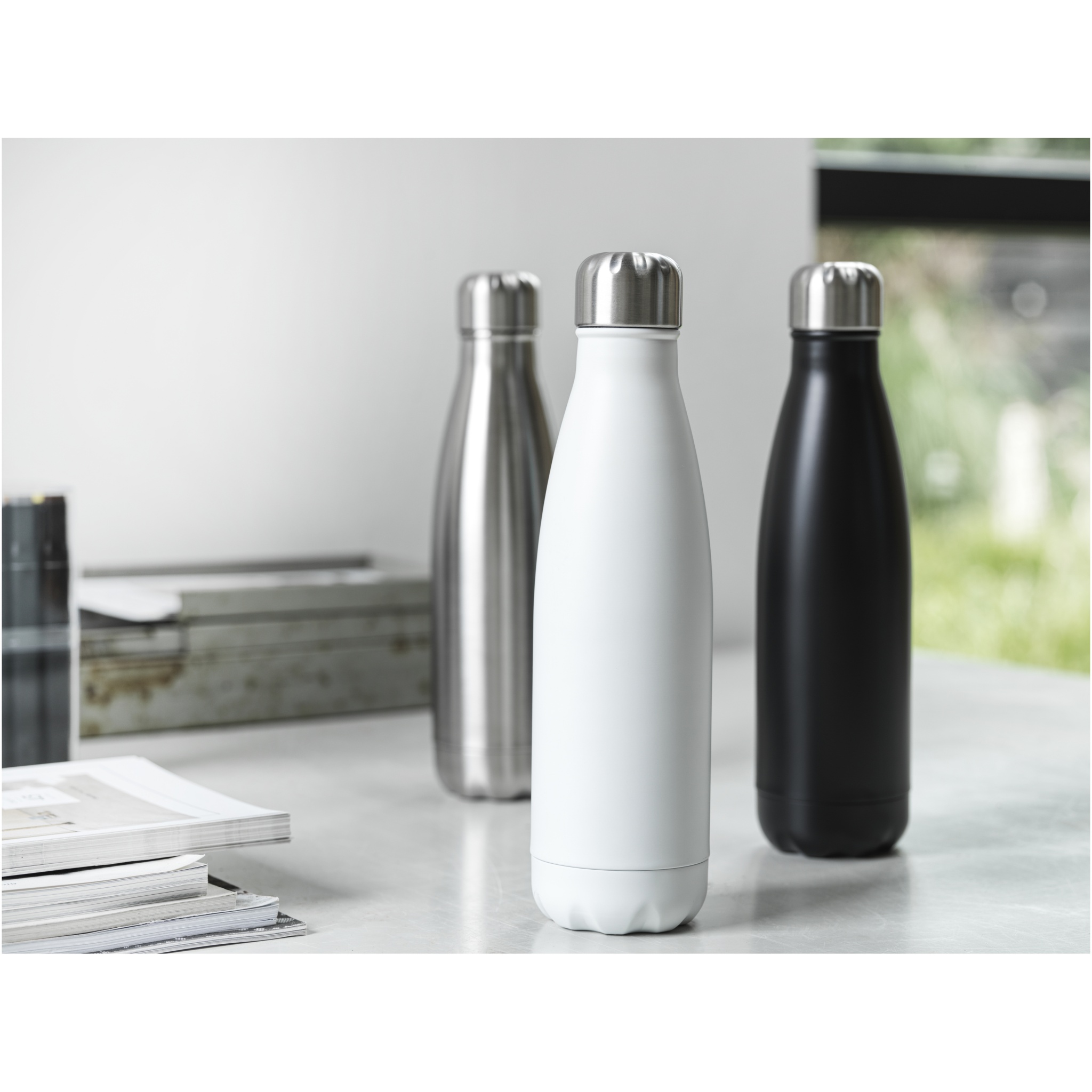 Vakuuma izolēta RCS sertificēta otrreizēji pārstrādāta nerūsējošā tērauda pudele ar ikonisku dizainu, kas vairākas stundas uztur dzērienus karstus vai aukstus. Šī gludā ūdens pudele ar pamatni, kas iederas lielākajā daļā glāžu turētāju, ir ideāls reklāmas priekšmets. Pārbaudīts un apstiprināts saskaņā ar Vācijas pārtikas nekaitīguma tiesību aktiem (LFGB) un pārbaudīts uz ftalātu saturu saskaņā ar REACH noteikumiem. Tilpums ir 500 ml. Prezentēts pārstrādāta kartona dāvanu kastītē.