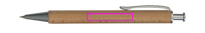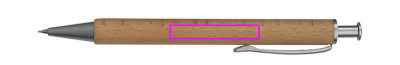 Koka lodīšu pildspalva ar zilu metāla sistēmas pildījumu un koka korpusu. Lāzergravējums ir uzstādīts zem klipa.