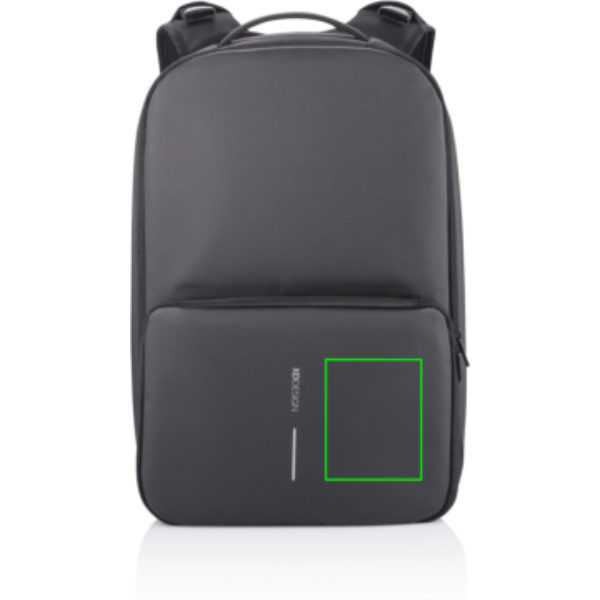 Elastīga un praktiska Flex Gym soma ir pirmā biznesa mugursoma un sporta soma vienā. Ātri pārveidojiet šo mugursomu no biznesa par sporta zāles stilu, paplašinot priekšējo kabatu no 16 līdz 24 litriem. Pretaizdzīšanas dizains bez piekļuves priekšpusē un slēptiem rāvējslēdzējiem galvenajā nodalījumā nodrošinās, ka jūs droši nēsājat savas profesionālās ierīces. Ar RFID aizsargāto kabatu aizmugurē varat droši uzglabāt savu maku, mobilo tālruni vai kredītkartes. Turklāt šī mugursoma nodrošina jums enerģiju ar ātrās USB uzlādes portu plecu siksnā, kur varat atrast arī saulesbriļļu turētāju. Flex Gym soma ir ideāla mugursoma neatkarīgi no tā, vai esat ceļā uz darbu, universitāti vai sporta zāli. Izgatavots no R-pet auduma ar AWARE™ marķieri. Izmantojot AWARE™, tiek garantēta īsta otrreizēji pārstrādāta auduma izmantošana. 42% pārstrādāta satura. Reģistrēts dizains®