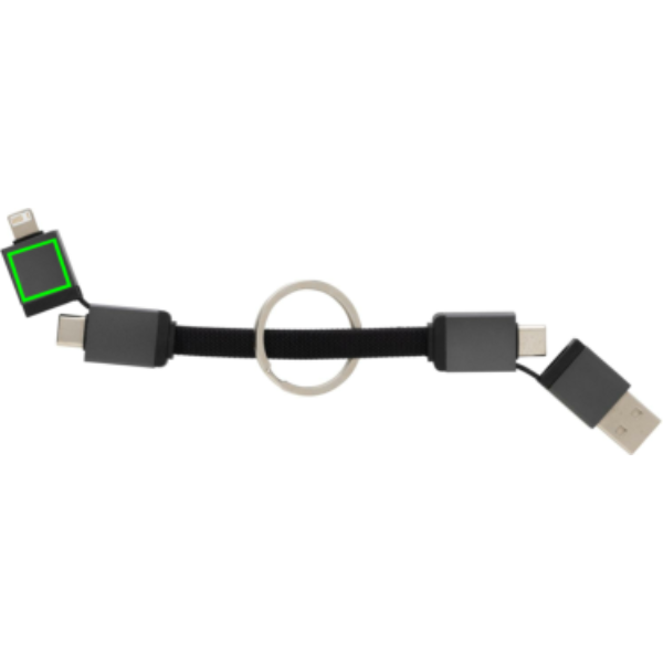Logotrade logo dāvanas foto: Terra pārstrādāta alumīnija 4 vienā 60 W ātrās uzlādes kabelis