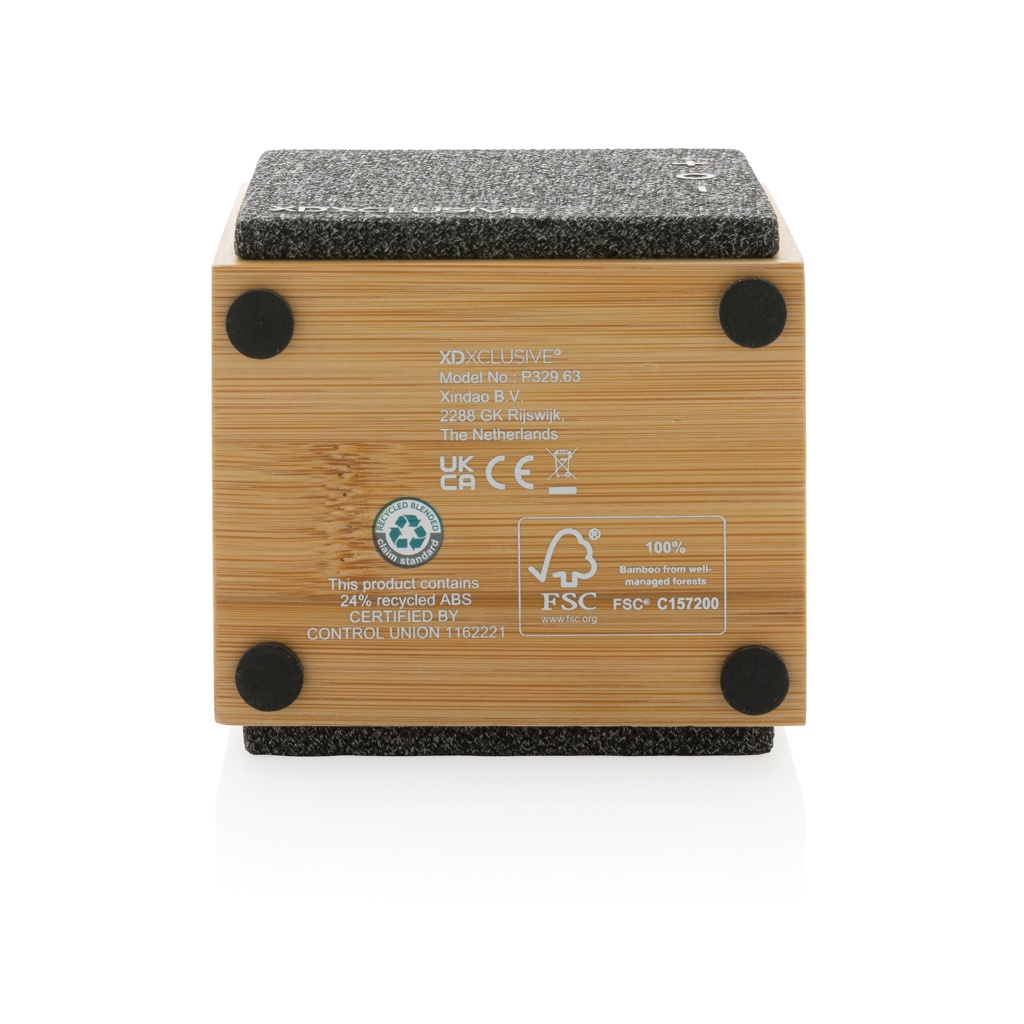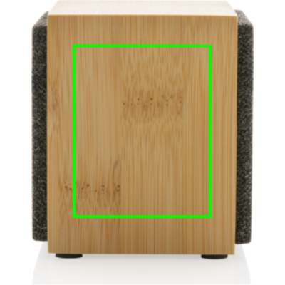 Luksusa 5 W skaļrunis ar skaidru skaņu un spēcīgiem basiem. Ārējais apvalks ir izgatavots no FSC 100% sertificēta bambusa. Plastmasas detaļas ir izgatavotas no RCS (Recycled Claim Standard) sertificēta pārstrādāta ABS. Kopējais pārstrādātais saturs: 24 %, pamatojoties uz izstrādājuma kopējo svaru. RCS sertifikācija nodrošina pilnībā sertificētu pārstrādāto materiālu piegādes ķēdi. Skaļrunim ir BT 5.1, kas nodrošina vieglu un vienmērīgu darbību līdz 10 metriem un zemu enerģijas patēriņu. 1200 mah akumulators nodrošina atskaņošanas laiku līdz 6 stundām, un to var pilnībā uzlādēt 2 stundu laikā. Ar paņemšanas funkciju un mikrofonu, lai atbildētu uz (video) zvaniem. Iepakots, ja FSC mix kraft kaste. Ietver RCS sertificētu pārstrādātu TPE uzlādes kabeli.