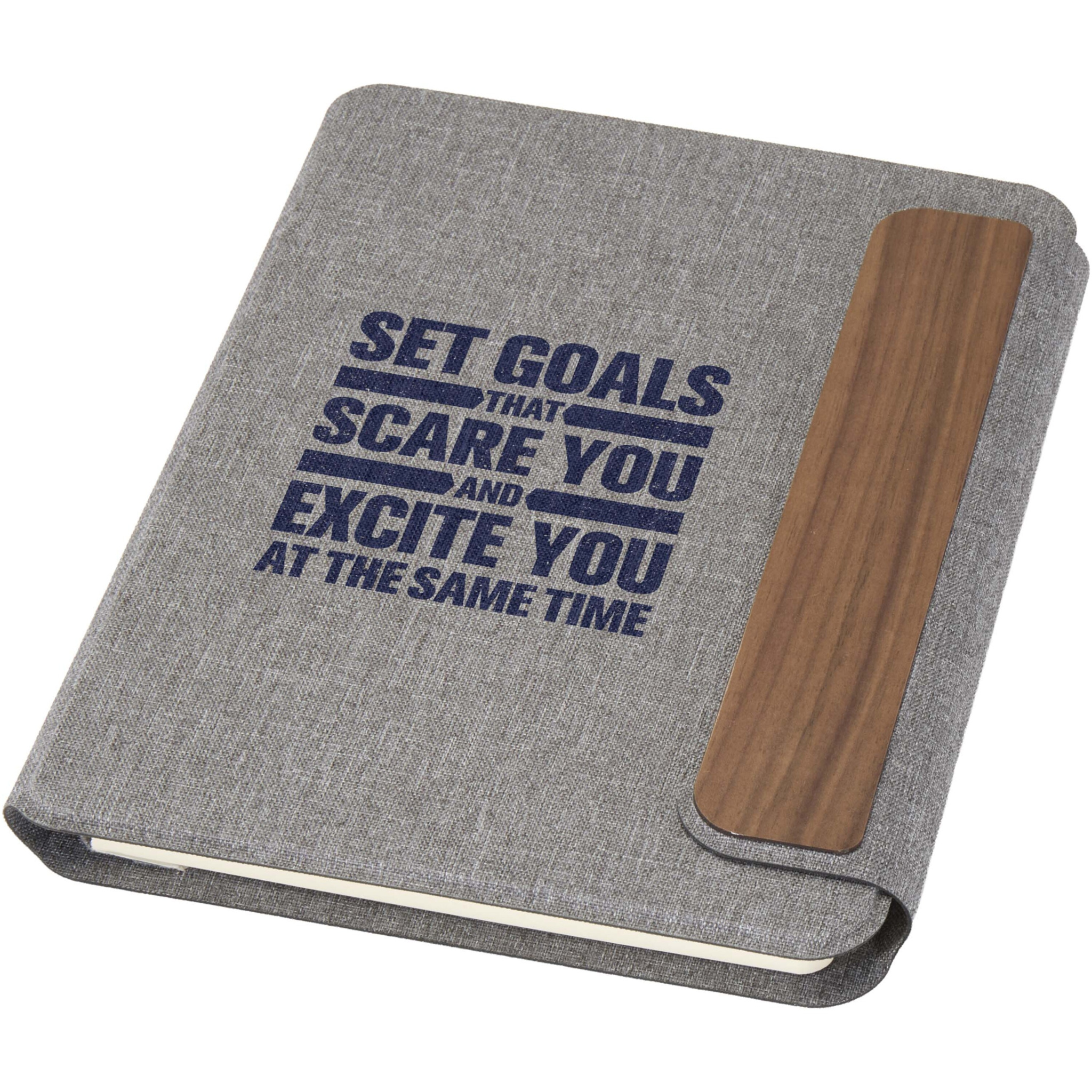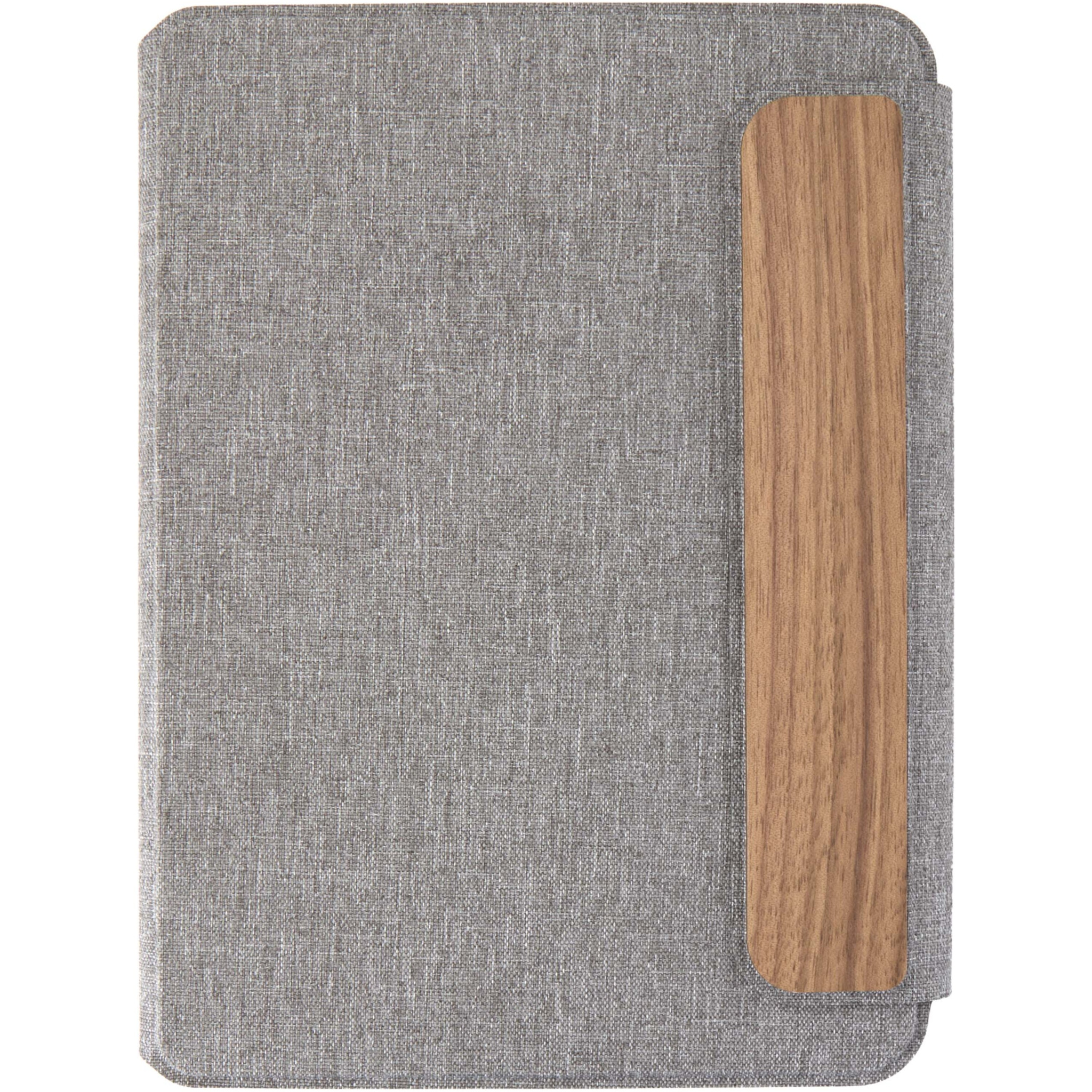 Портфель A5 Andean частично изготовлен из переработанного полиэстера, сертифицированного RCS, что является более экологичной альтернативой за счет снижения зависимости от первичных материалов. Изделие, сделанное с использованием технологии прецизионной сварки, имеет гладкий серый твердый внешний слой с закругленными углами, а также магнитную застежку, дополненную изысканной деталью из орехового дерева, что придает современный и изысканный вид. Внутри вы найдете блокнот в мягкой съемной обложке с 64 линованными листами кремового цвета, изготовленный из бумаги плотностью 80 г/м², полученной из ответственных источников. Поставляется в обложке из крафтовой бумаги.