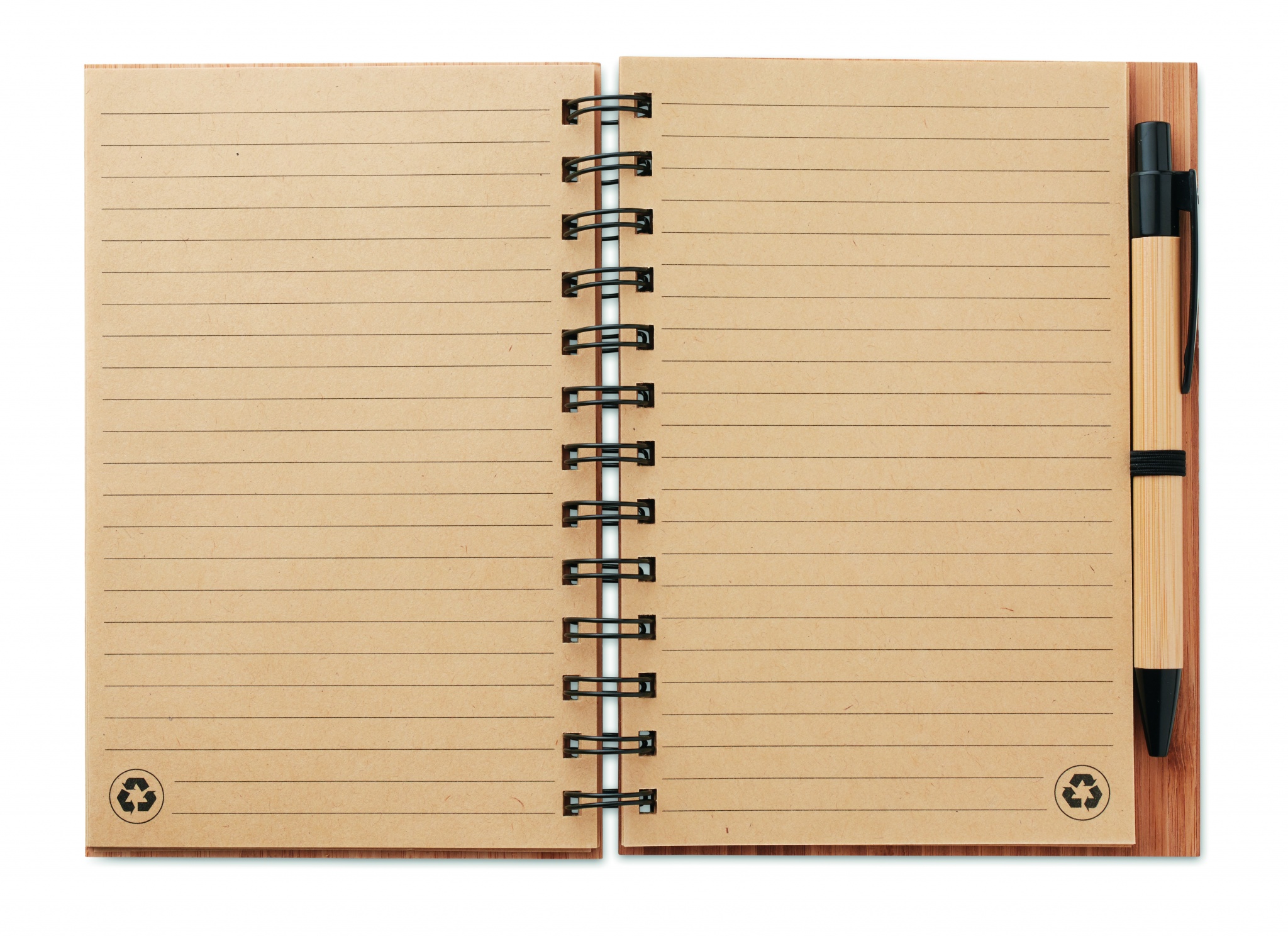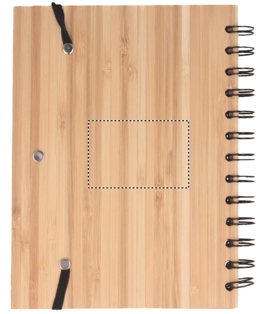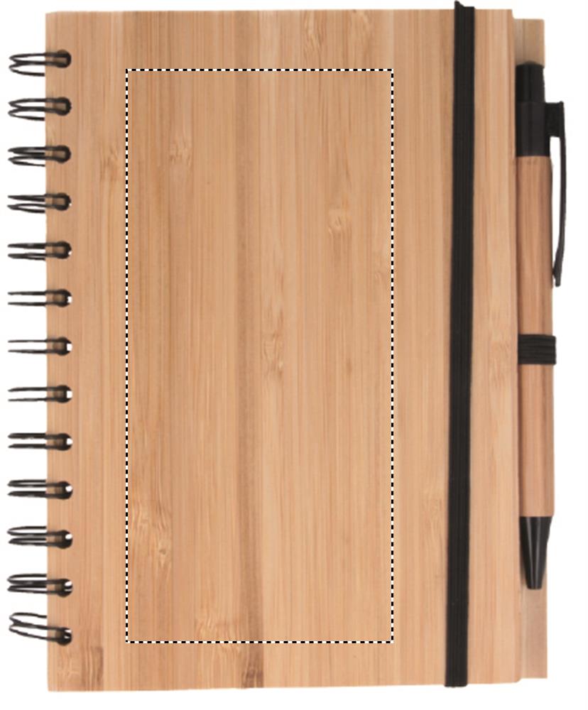 Блокнот в обложке из бамбука с 70 страницами из переработанной бумаги. Имеет бамбуковую ручку с кончиком и клипсой из ABS