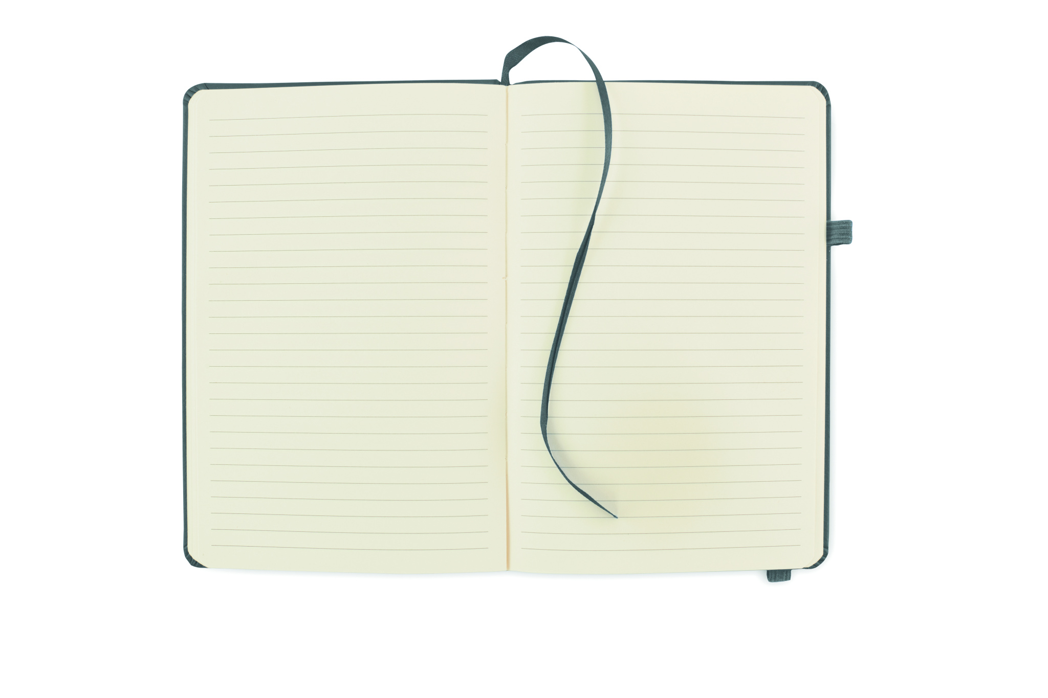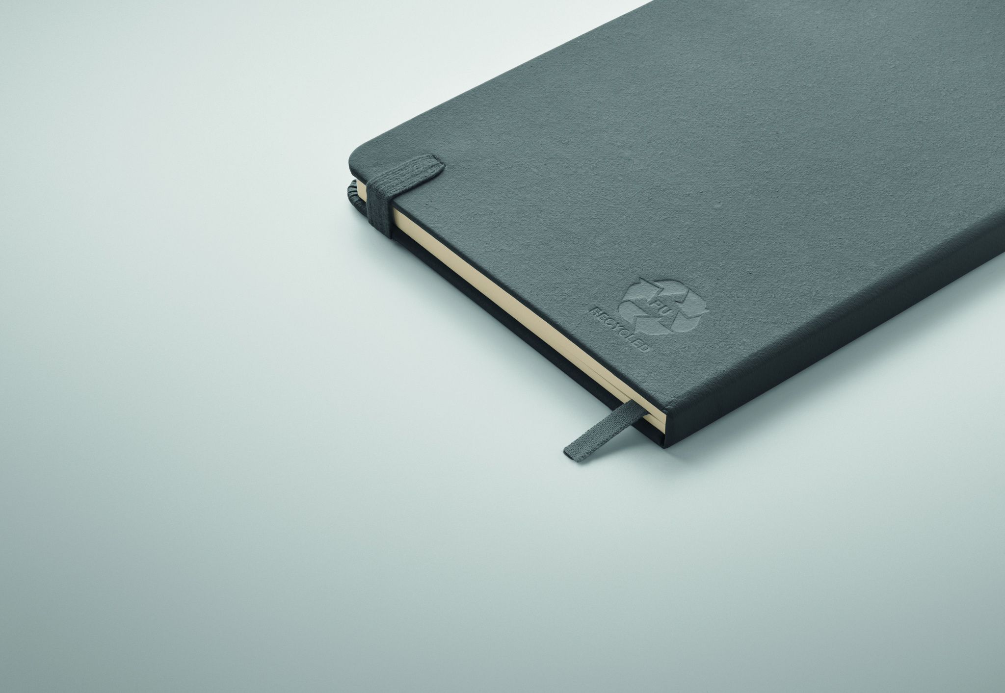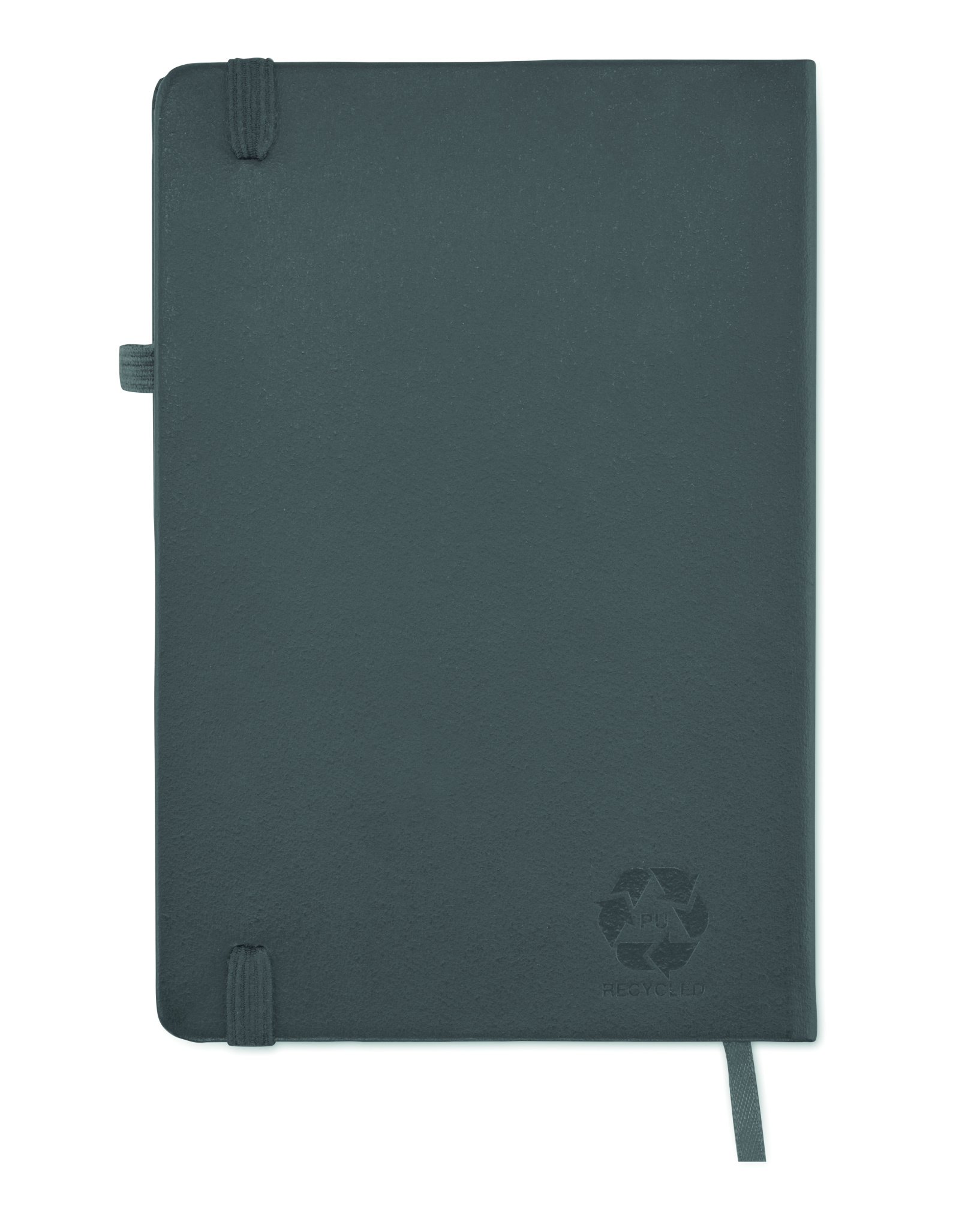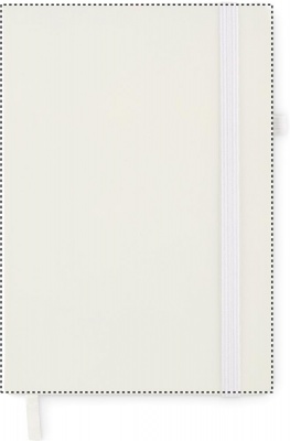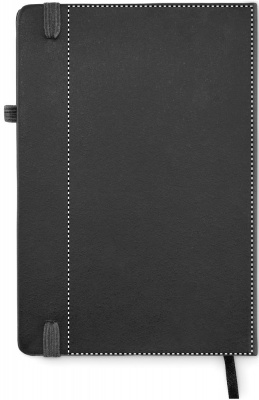 Блокнот формата A5 с обложкой из переработанного полиуретана. Переплет. 192 линованные страницы из переработанной бумаги (96 листов). Эластичный ремешок и крепление для маркеров и ручек.