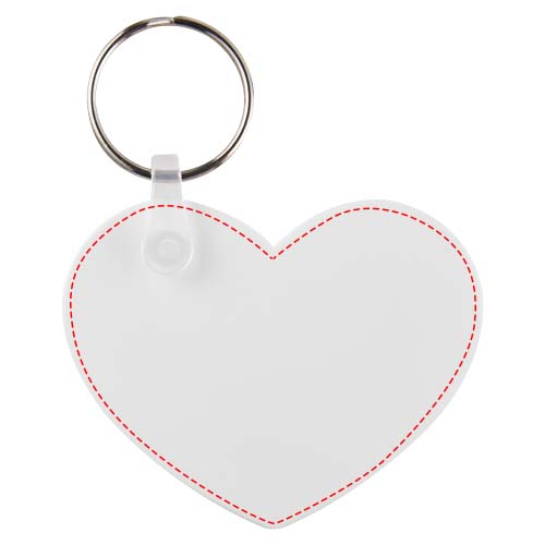 Брелок белого цвета в форме сердца с металлическим разъемным кольцом для ключей. Металлическая петля для крепления кольца представляет собой плоский профиль, что делает его идеальным для пересылки.