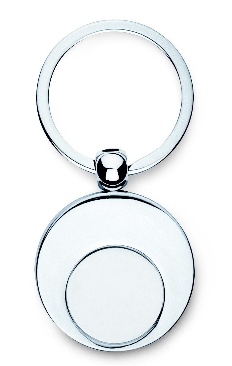 Круглый металлический брелок для ключей с отверстием, чтобы вставить монету в 1 Евро либо жетон.