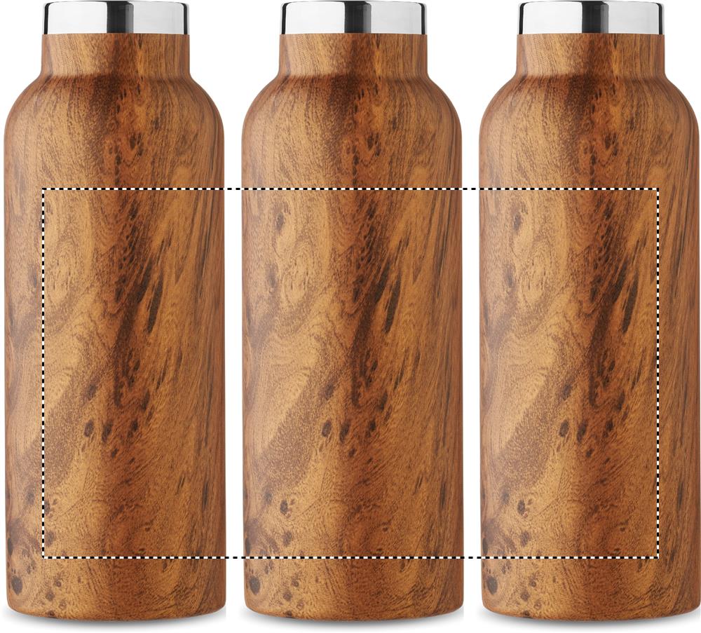 Термобутылка с двойными стенками из переработанной нержавеющей стали (90% переработанной нержавеющей стали и 10% нержавеющей стали) с деревянной крышкой и ручкой для переноски. Герметична. Объем: 500 мл.