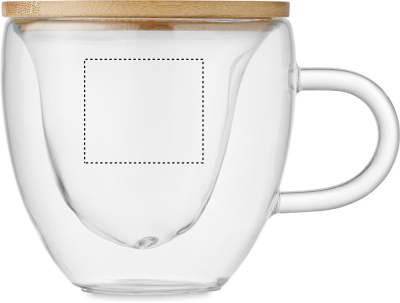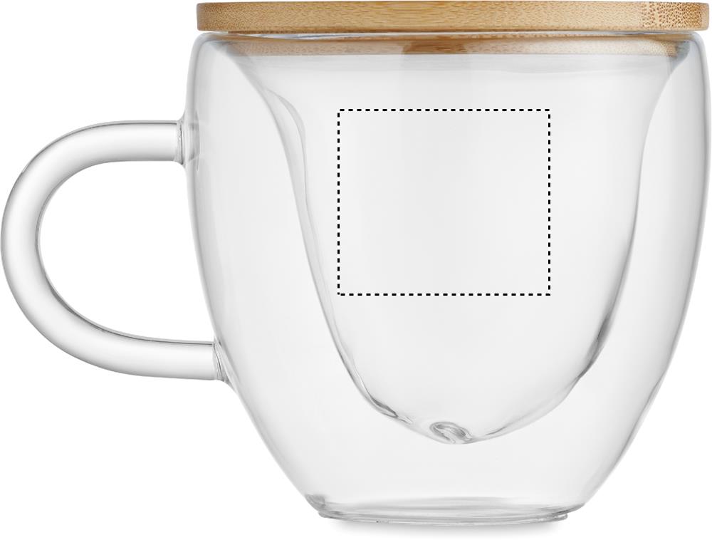 Чашка из боросиликатного стекла с двойными стенками в форме сердца и бамбуковой крышкой. Объем: 180 мл.