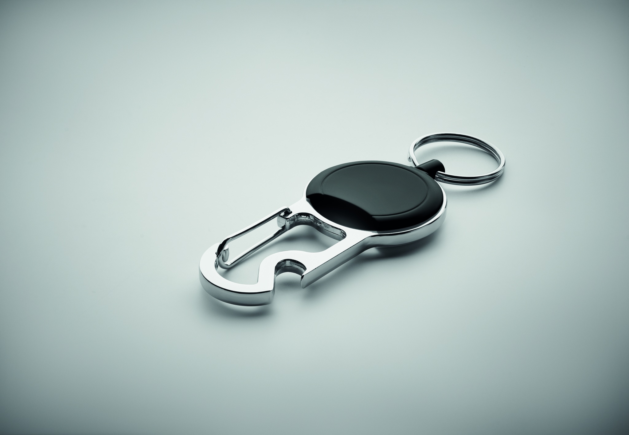 Выдвижной держатель для бейджей из пластика с клипом, брелком для ключей и открывалкой для бутылок.