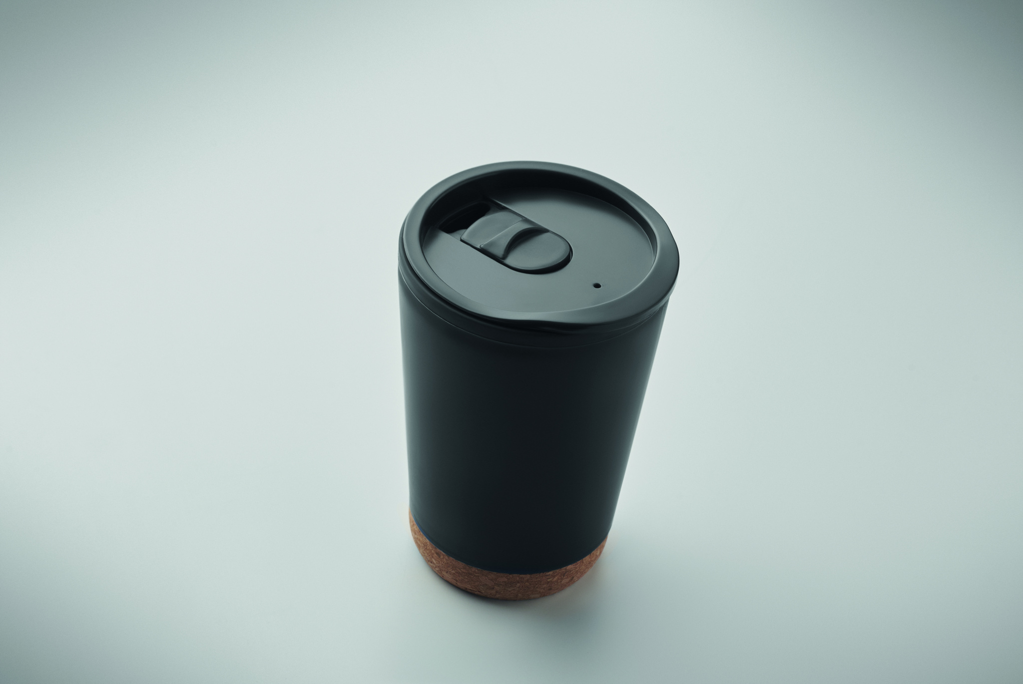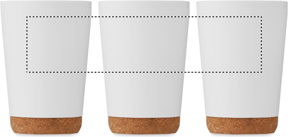 Double wall tumbler in PP with cork base and slide closing drinking mouthpiece lid in PS and ABS. Capacity: 300 ml.