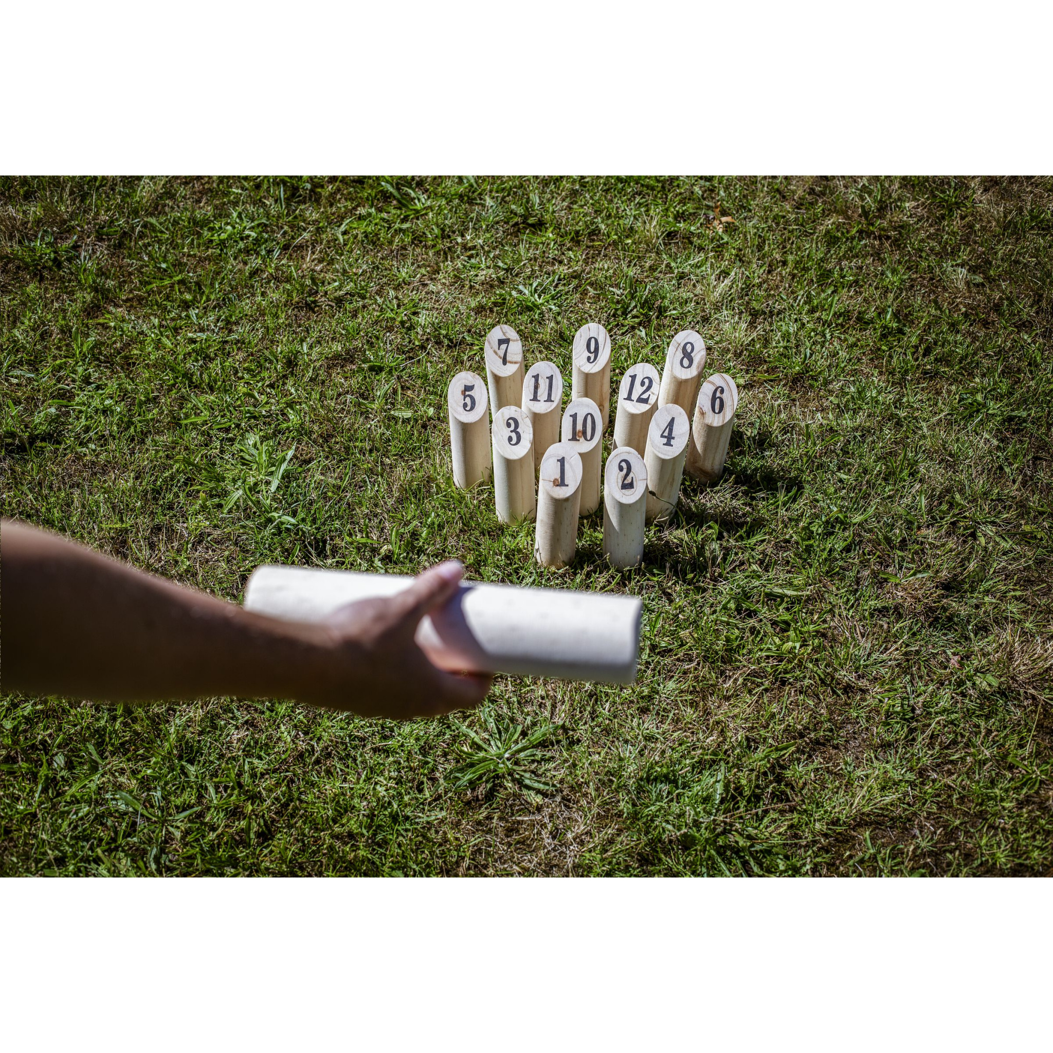 Деревянная игра-метание, также известная как финские кегли. Кто первым наберет требуемые 50 очков? Эта финская игра для вечеринок на открытом воздухе требует мастерства, точности и стратегии. Весело играть в кемпинге или на пляже. Подходит для игроков как молодых, так и старых. Набор из 13 предметов поставляется в хлопчатобумажной сумке. Включает инструкцию. Каждый предмет поставляется в индивидуальной коричневой картонной коробке.