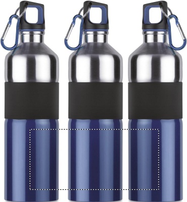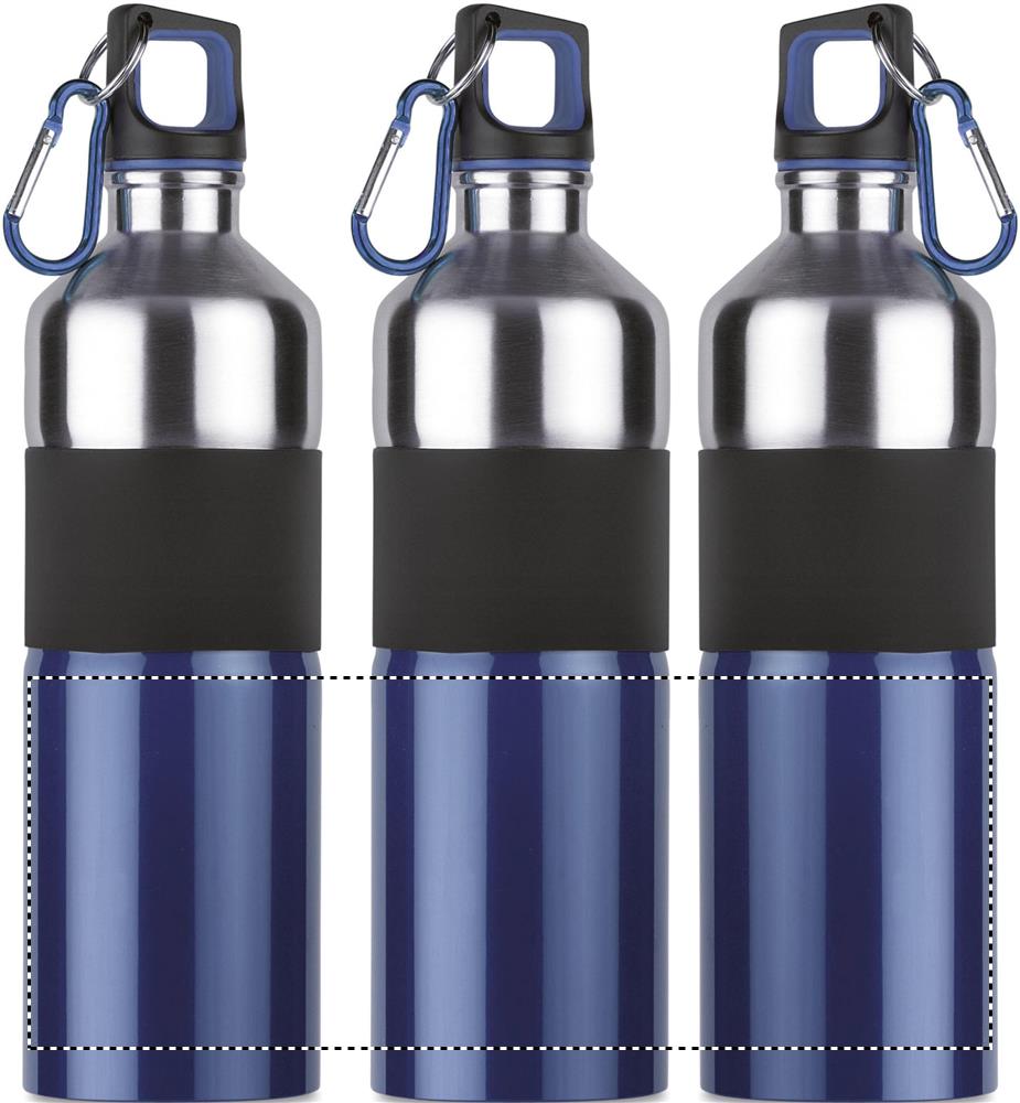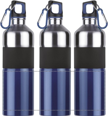 Фляга питьевая двухцветная из нержавеющей стали с резиновым обхватом и карабином. Объем 750 мл. Не протекает.