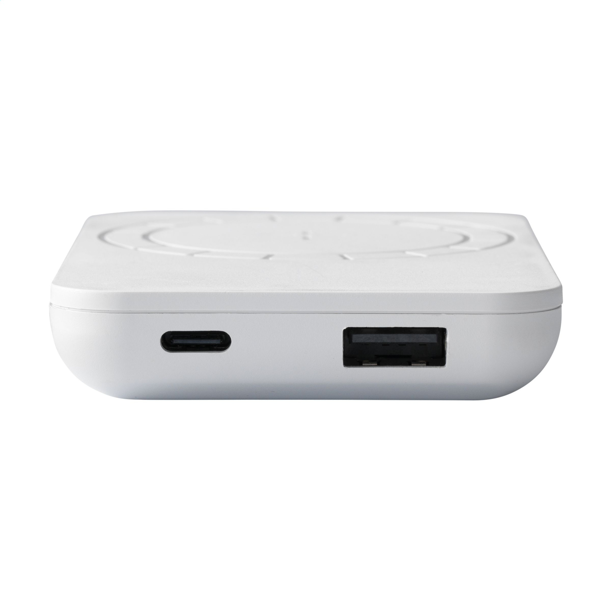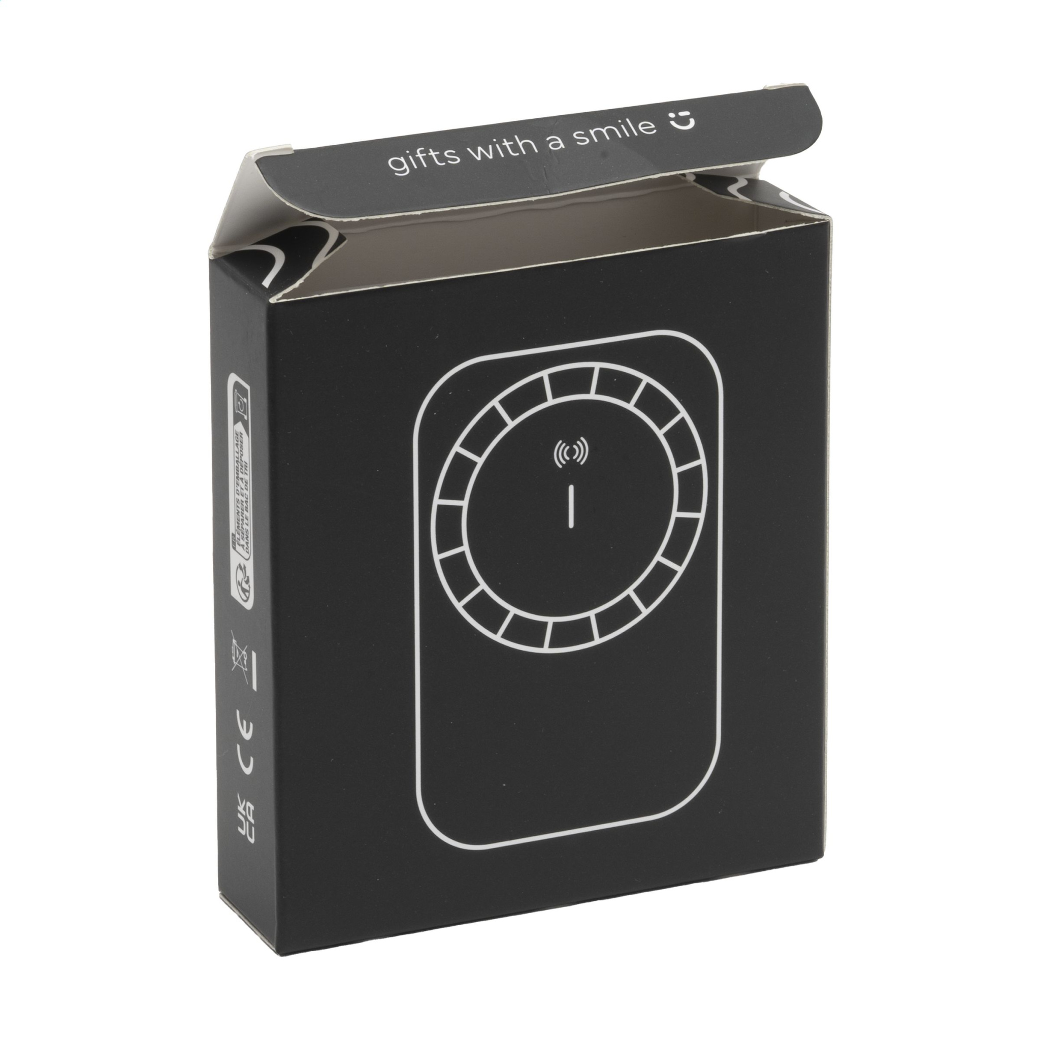 Магнитный беспроводной внешний аккумулятор из переработанного АБС-пластика со встроенным полимерным аккумулятором (5000 мАч). Просто приложите зарядное устройство к задней части мобильного телефона, чтобы зарядить устройство. Встроенные магниты (17 высококачественных термостойких N52H) в этом зарядном устройстве идеально выровнены и всегда гарантируют, что ваш телефон будет расположен правильно для оптимальной зарядки. Также в комплект входит дополнительное магнитное металлическое кольцо для поддержки зарядки немагнитных беспроводных перезаряжаемых смартфонов. Совместимо со всеми мобильными устройствами, поддерживающими беспроводную зарядку QI (последнее поколение Android и iPhone 8 и выше). Для других моделей телефонов этот продукт можно использовать как обычное беспроводное зарядное устройство. Вход и выход Type-C: 5 В/2 А. Выход USB: 5 В/2 А. Беспроводной выход 5 В/1 А 5 Вт. В комплект входит кабель для зарядки Type-C и руководство пользователя. Как продукт, так и его аксессуары не содержат ПВХ. Сертифицировано RCS. Общее количество переработанного материала: 30%. Каждый предмет упакован в индивидуальную коробку.