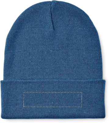 Unisex knitted beanie hat in soft stretchable polyester (64%) and acrylic (36%) with rolled up cuff. A stretchy one-size-fits-all design.