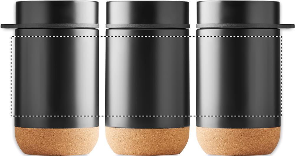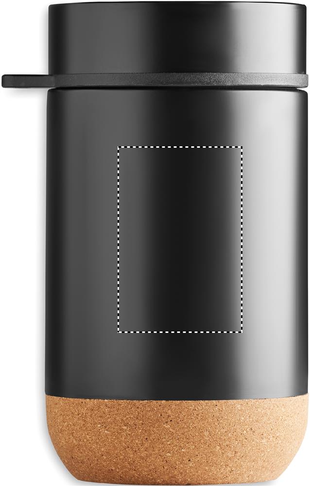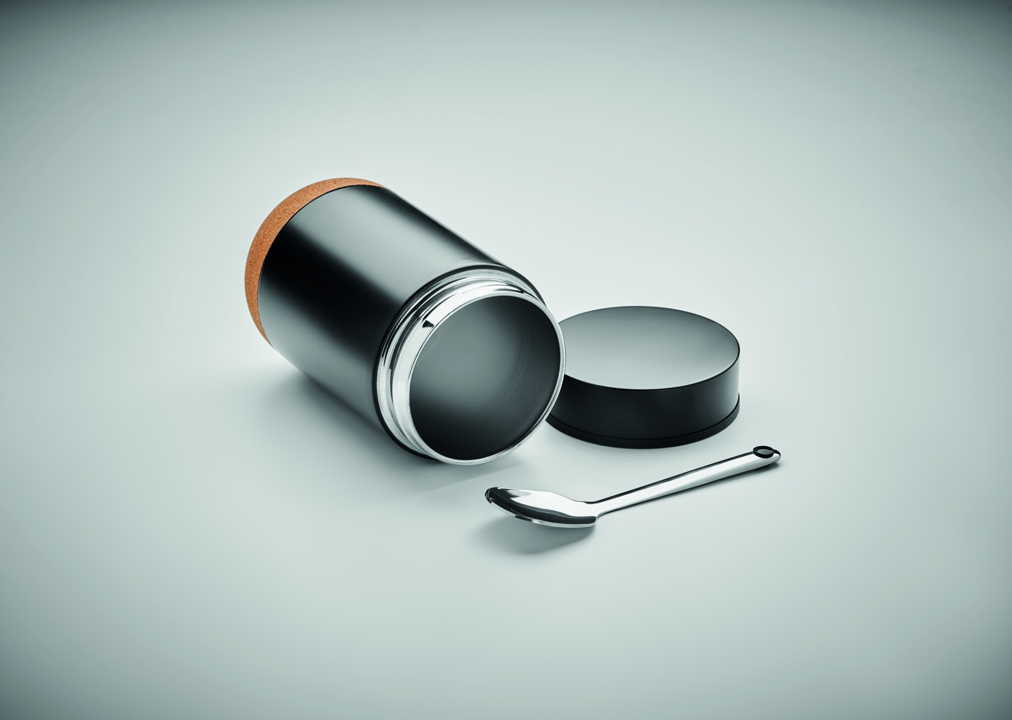 Металлическая емкость для хранения с двойными стенками из нержавеющей стали с винтовой крышкой и пробковым дном. В комплект входит ложка. Объем: 400 мл.