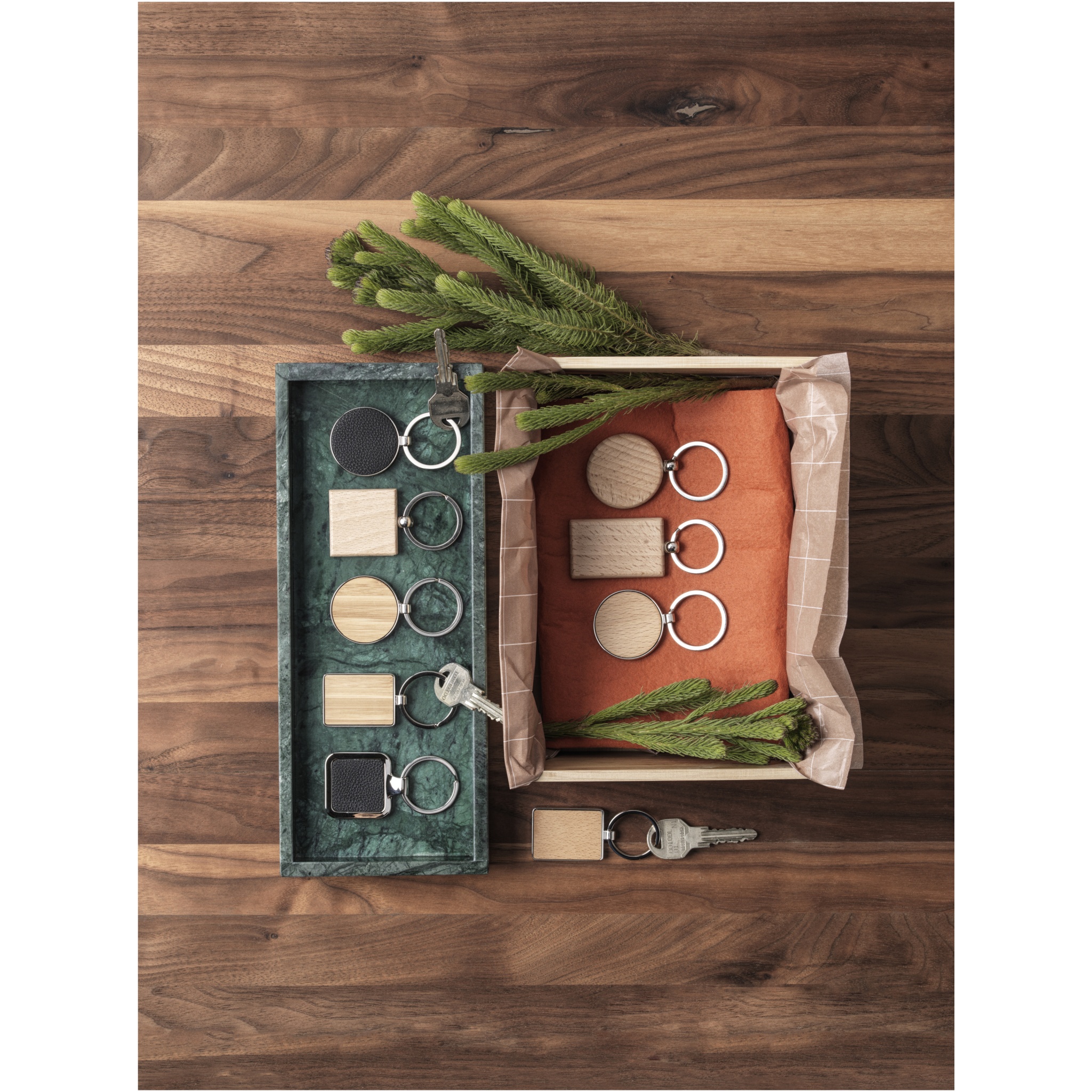 Квадратный брелок из буковой древесины, поставляемый в коричневой упаковке из шрифтовой бумаги. Размер 4 х 4 см. Пригоден для лазерной гравировки.