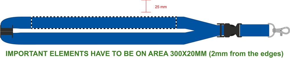 Ланьярд с металлическим карабином, отстегивающийся механизм, и предохранительный разъем. Ширина 25 мм.