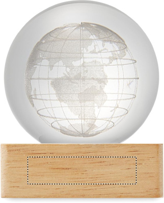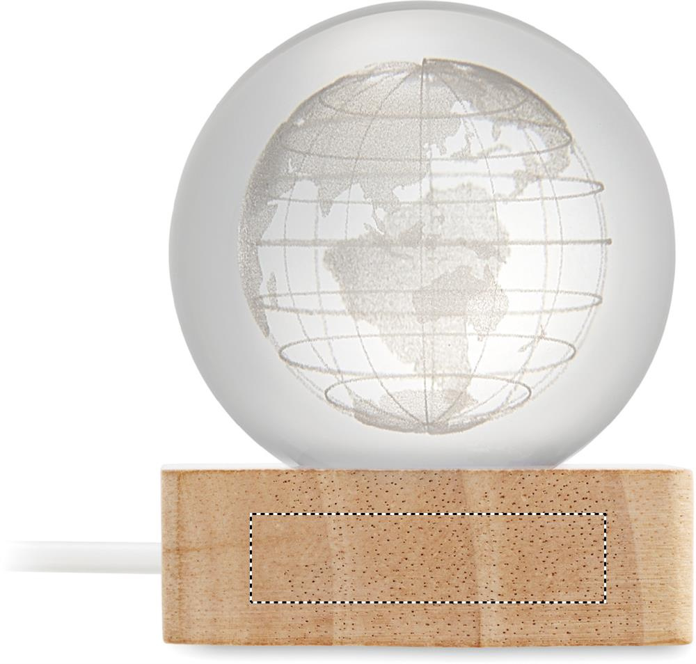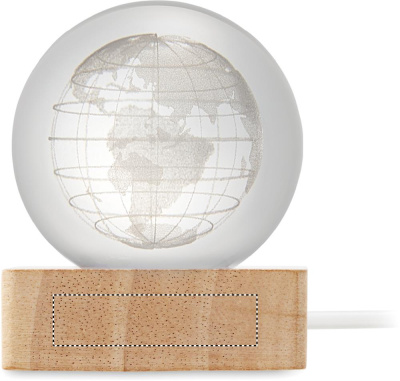 Glass globe ball with LED light (100 lumens) on a rubber wood base. Includes a USB charging cable (90 cm).