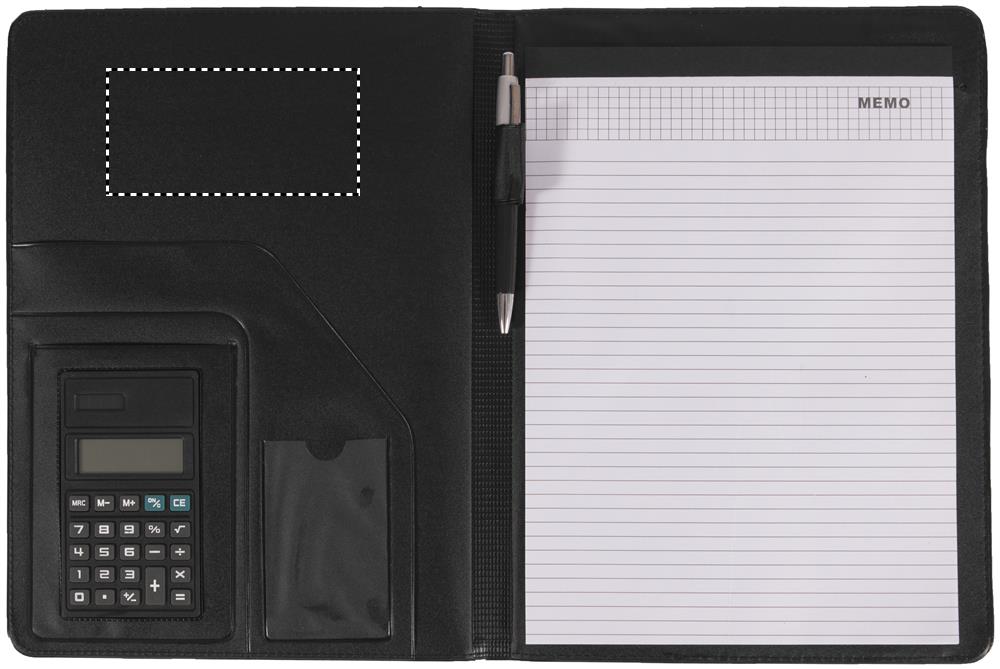 Папка А4 из искусственной кожи с калькулятором на солнечных батарейках, синей шариковой ручкой и блокнотом