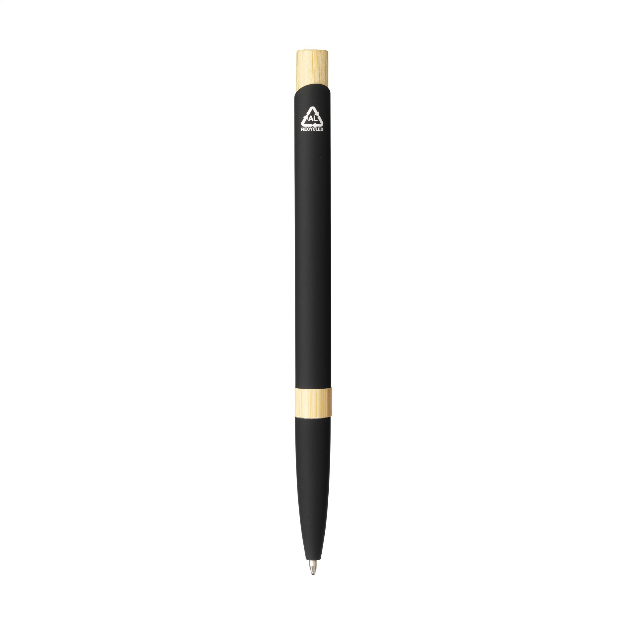 WoW! Тонкая шариковая ручка с синими чернилами, корпусом из переработанного алюминия, прорезиненной отделкой и прочным металлическим зажимом. Бамбуковые акценты придают ручке естественный характер. Сертифицировано GRS. Общее количество переработанного материала: 73%. Использование переработанного алюминия означает, что в производстве используется меньше нового сырья. Это означает меньшее потребление энергии и меньшее использование воды. Ответственный выбор.