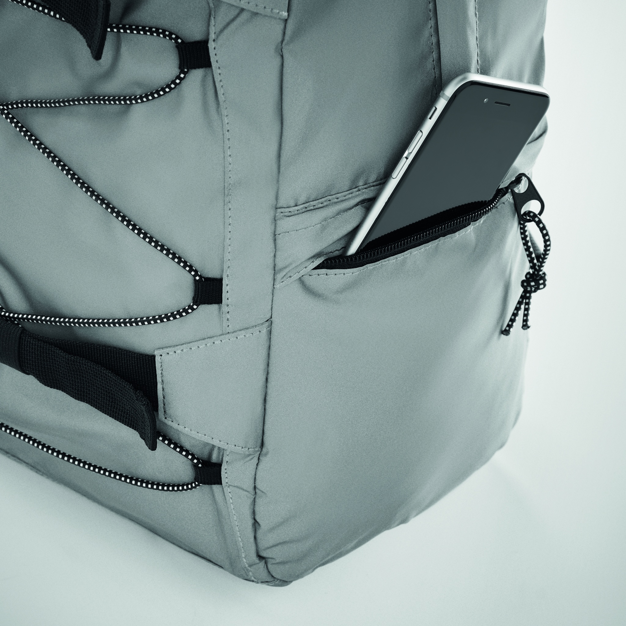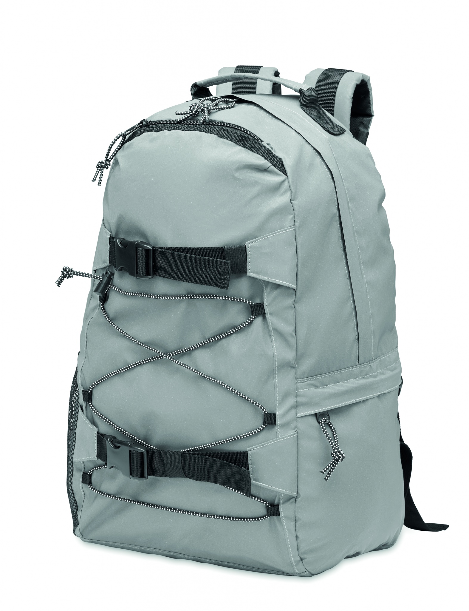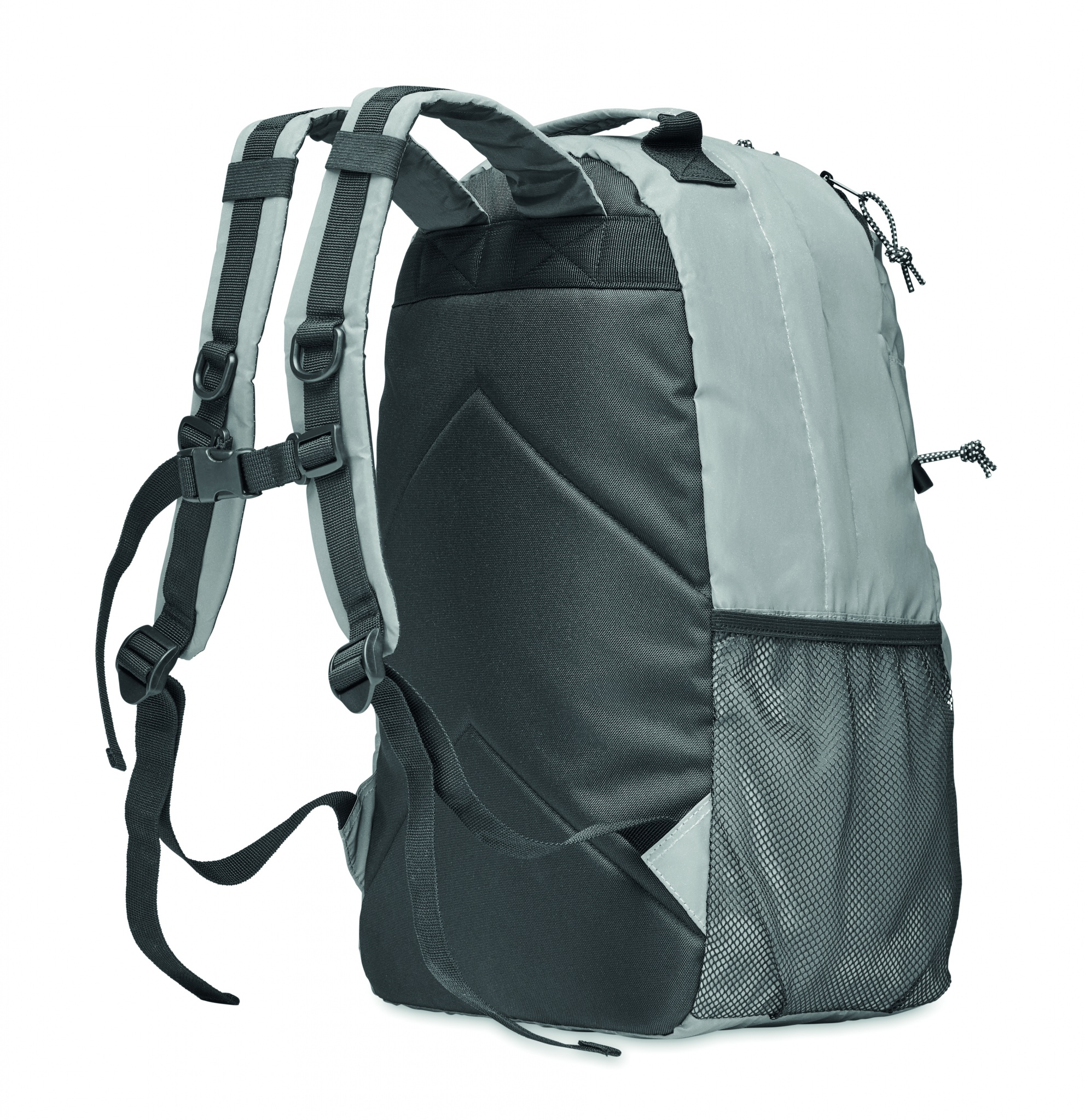 Рюкзак из полиэстера 190T с высокой светоотражающей способностью и шнуровкой спереди. Спинка, лямки и дно с мягкой подкладкой. Имеет отделение для ноутбука 15 дюймов. С одной стороны сетчатый карман, с другой стороны карман на молнии.