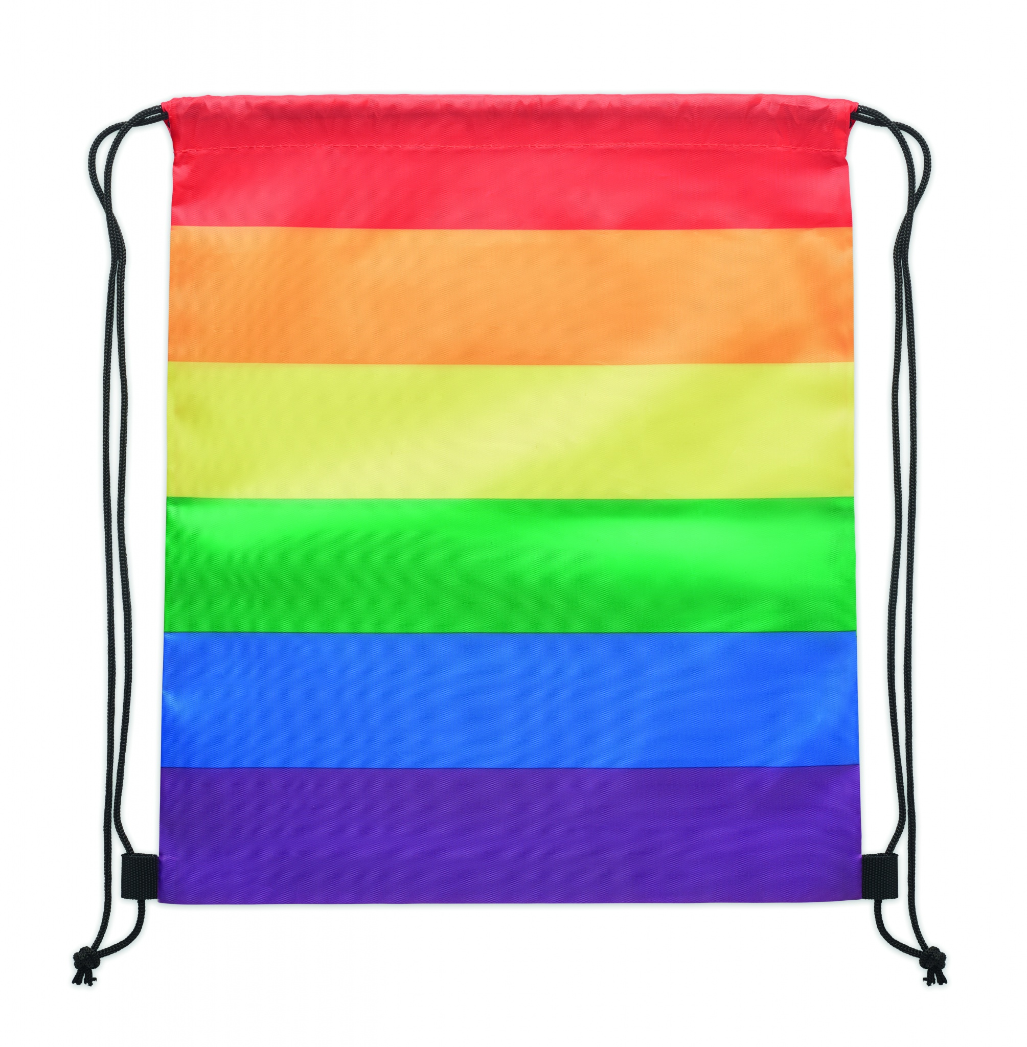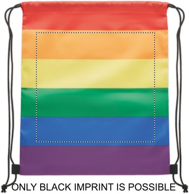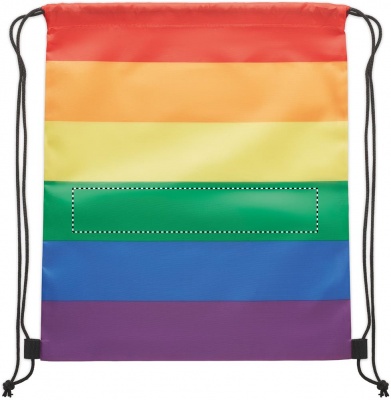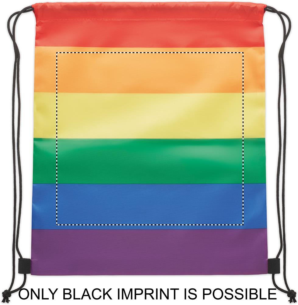 Рюкзак на шнурках в цветах радуги из полиэстера 210D RPET с полипропиленовыми нитками.
