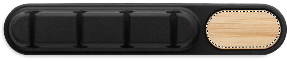 Silicone cable organiser with natural bamboo detail. Compact oval design keeps cables tidy and secure.