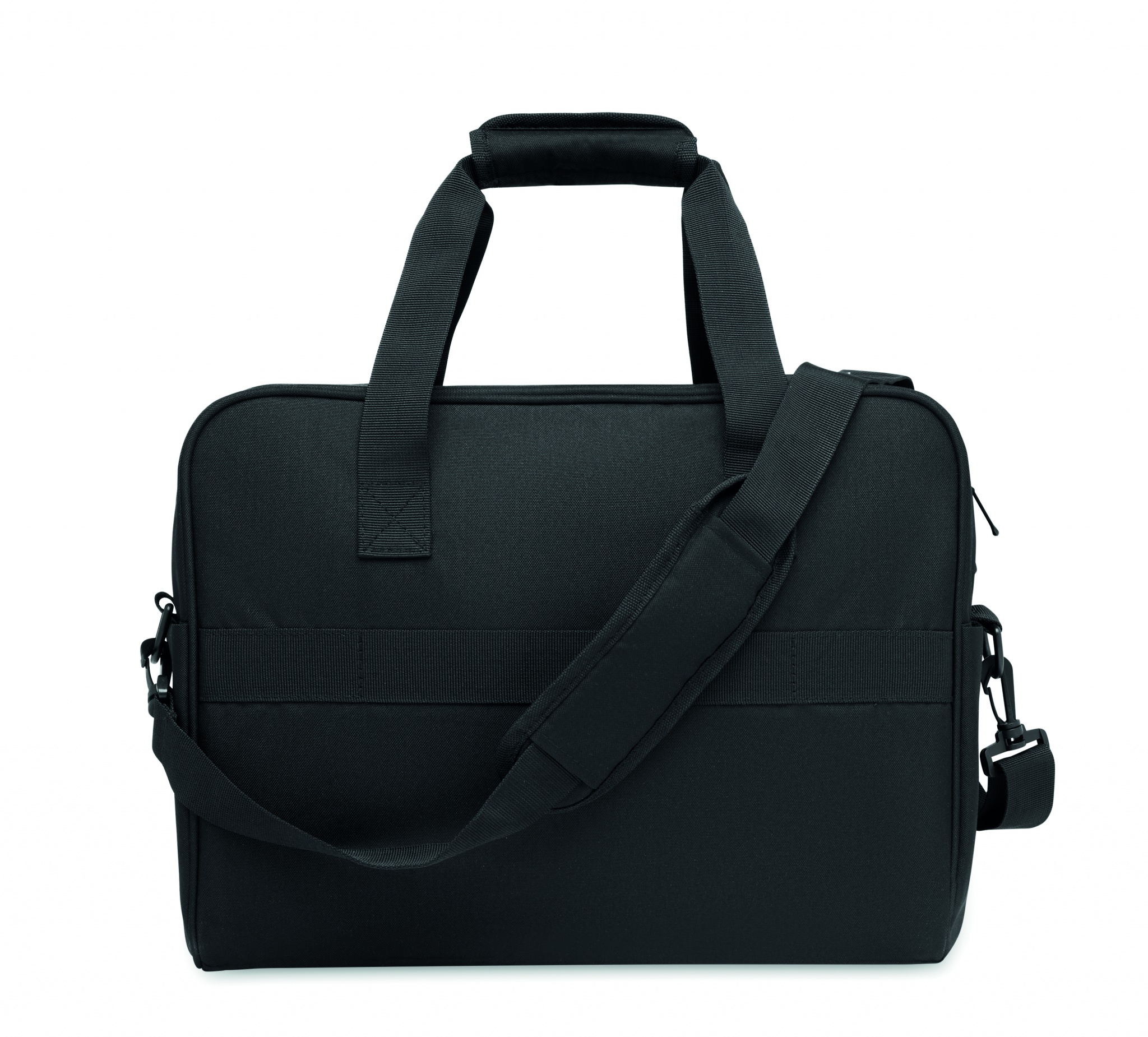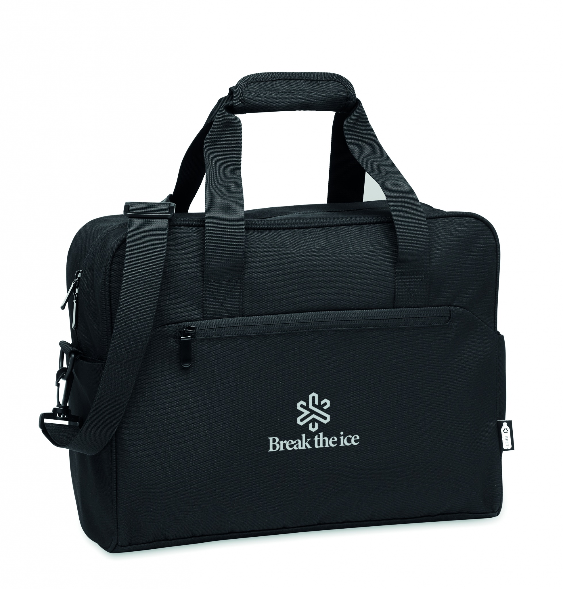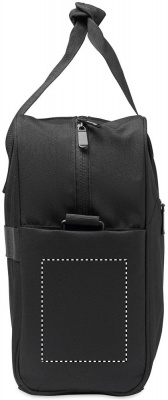 Дорожная сумка из материала 600D RPET с большим передним карманом на молнии и двумя маленькими боковыми карманами. Включает отделение для 15-дюймового ноутбука. Съемный регулируемый плечевой ремень с мягкой подкладкой. Держатель для чемодана на обратной стороне.