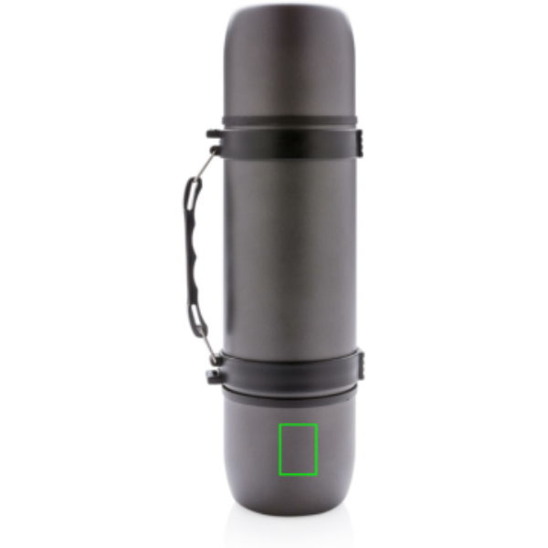 Термос из нержавеющей стали с двойными стенками, элегантный дизайн, ручка и плечевой ремень, вмещает две подходящие чашки для оптимального питья. Герметичен, можно мыть только вручную. Объем 700 мл.