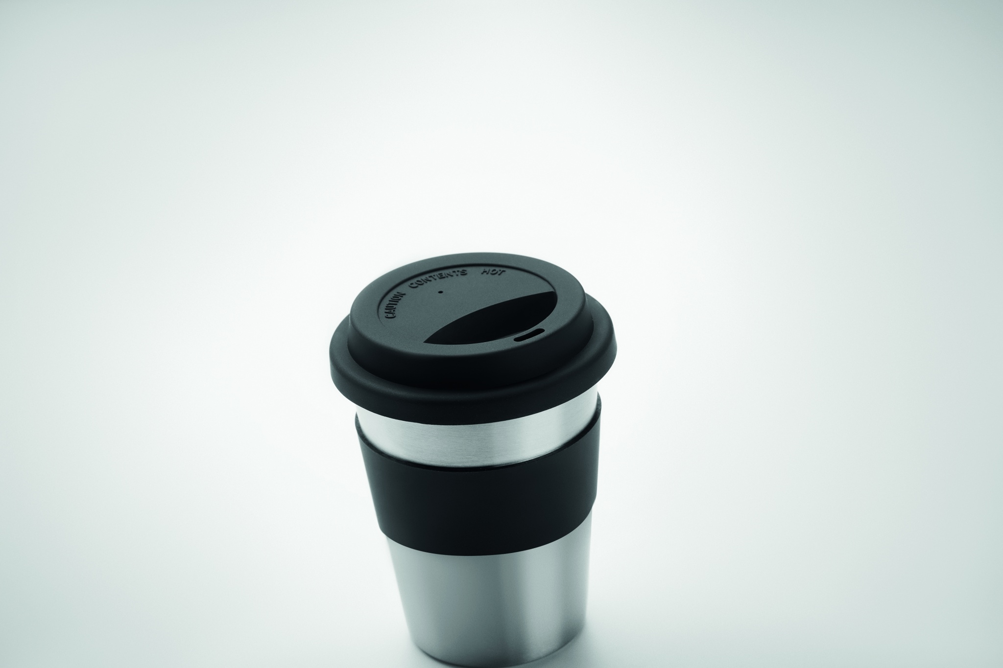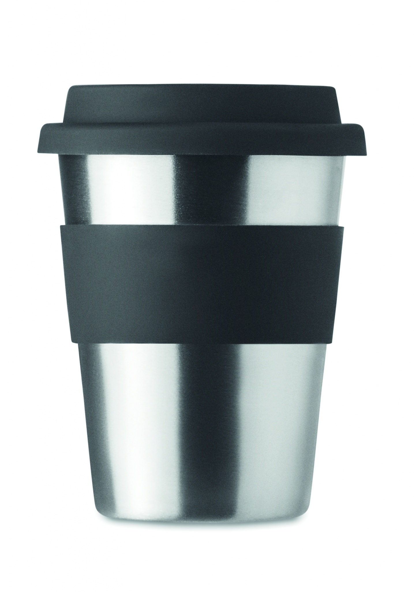 Стакан одностенчатый из нержавеющей стали с силиконовой крышкой и поясом. Емкость 350 мл. Поскольку это одностенчатая кружка, стакан может нагреваться.
