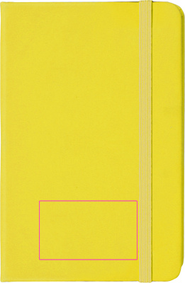 Тетрадь формата DIN A6 в бархатисто-полиуретановой обложке на 170 нейтральных страниц. На обложке напечатаем ваш логотип.