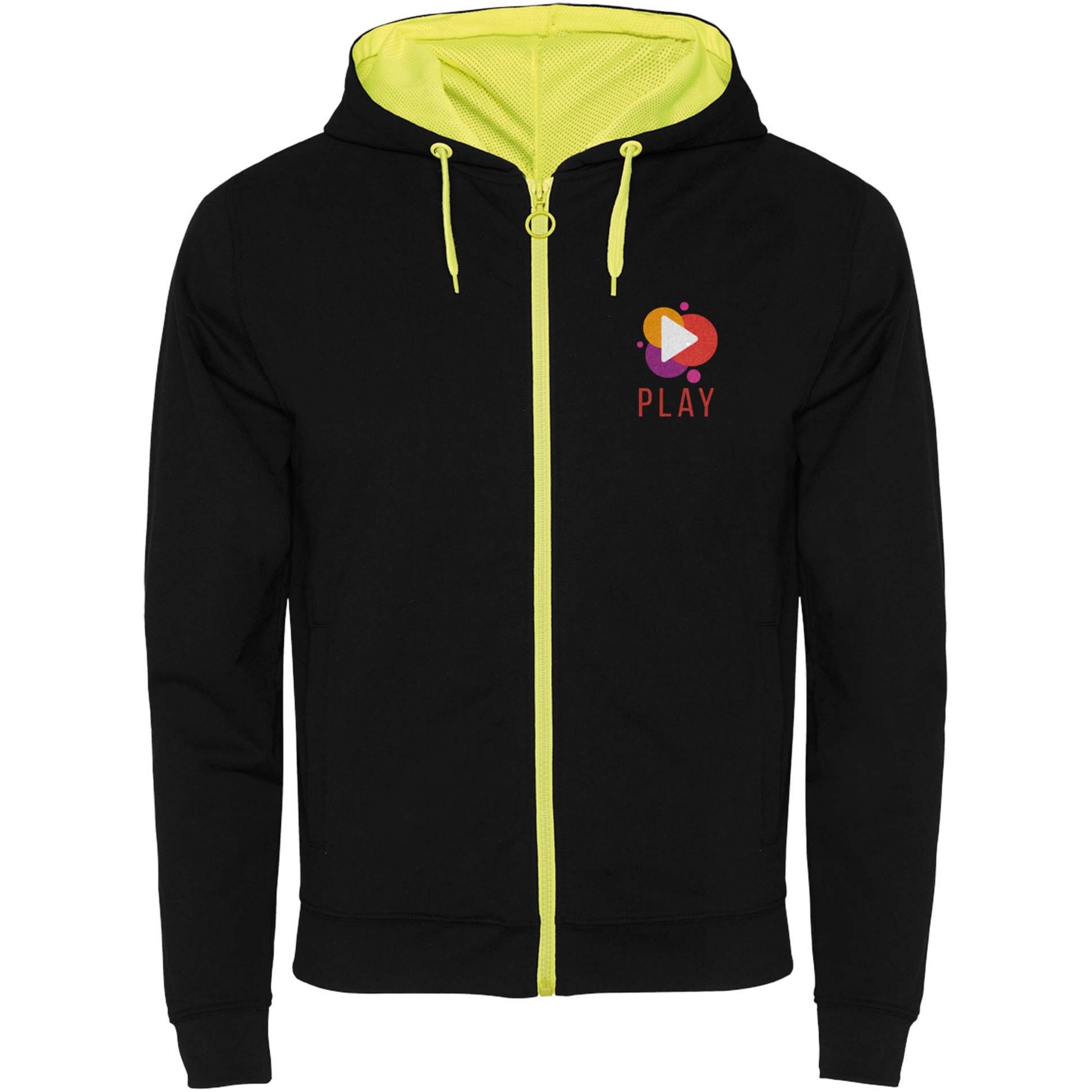 Толстовка унисекс Fuji, Сплошной черный / Флюоресцентный желтый