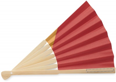 Веер с ручкой из бамбука и рисунком флага на ткани.