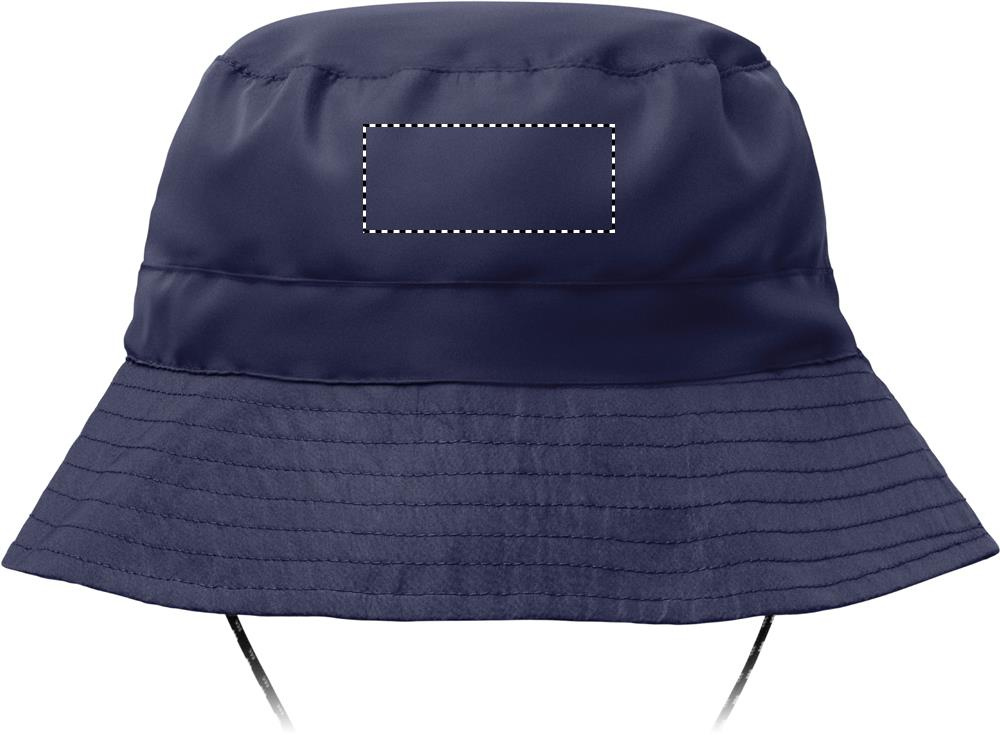 Water repellent fisherman hat made of polyester, includes self material pouch with ABS carabiner. 64 gr/m².