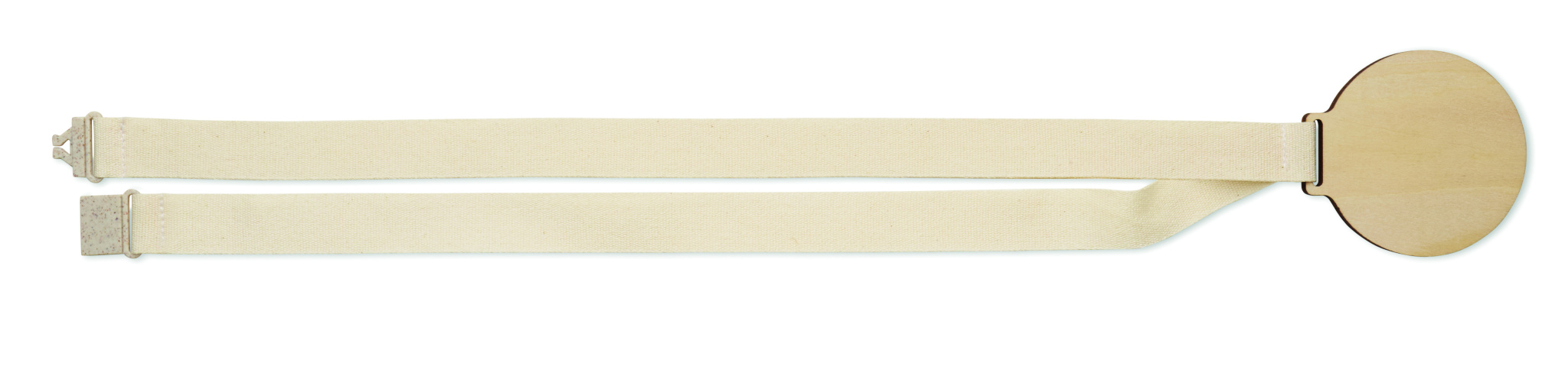 Wooden medal with cotton strap and wheat straw/PP buckle.