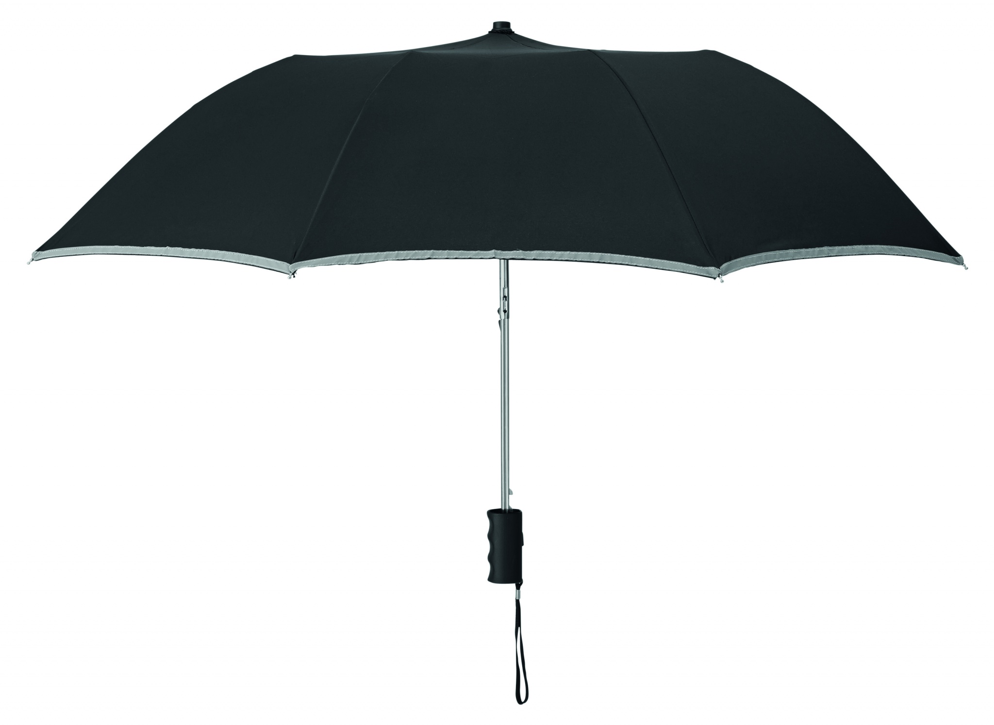 Автоматический складывающий вдвое зонт в чехле. Отделан светоотражающей каемкой. Диаметр в раскрытом виде 94 см