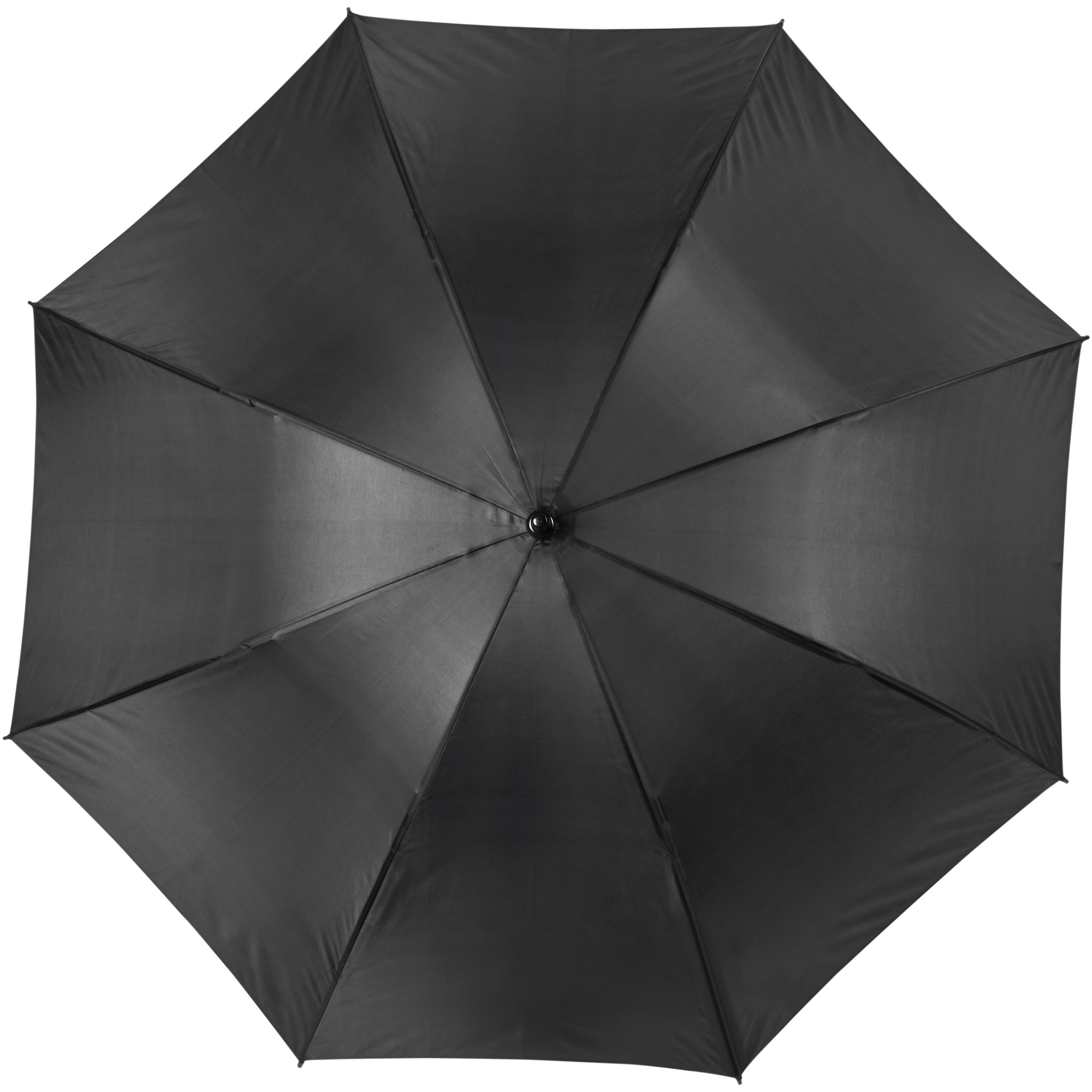 Зонт с ручным раскрытием и куполом из полиэстера. Оснащен прочным металлическим стержнем, высококачественной цельной рамой из стекловолокна, обеспечивающей максимальную гибкость в ветреную погоду. Изогнутая ручка из ЕВА, пластиковая верхняя часть и наконечники. Доступен в различных модных цветах с большой зоной для декорирования на каждой панели.