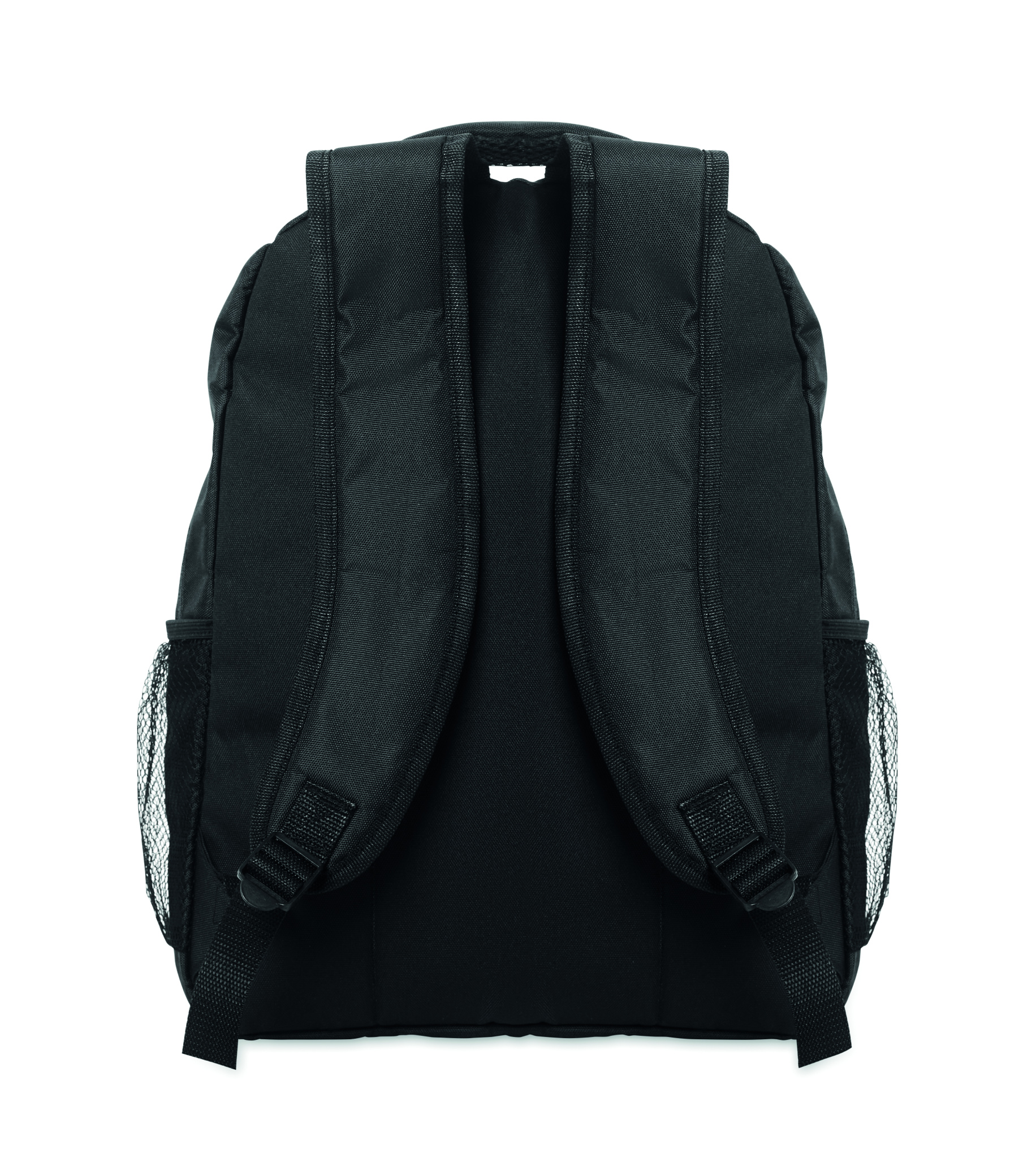 Dataryggsäck för 15 tum laptops i 600D RPET-polyester med vadderat laptopfack inuti, nätfickor på båda sidor och frontficka med dragkedja.