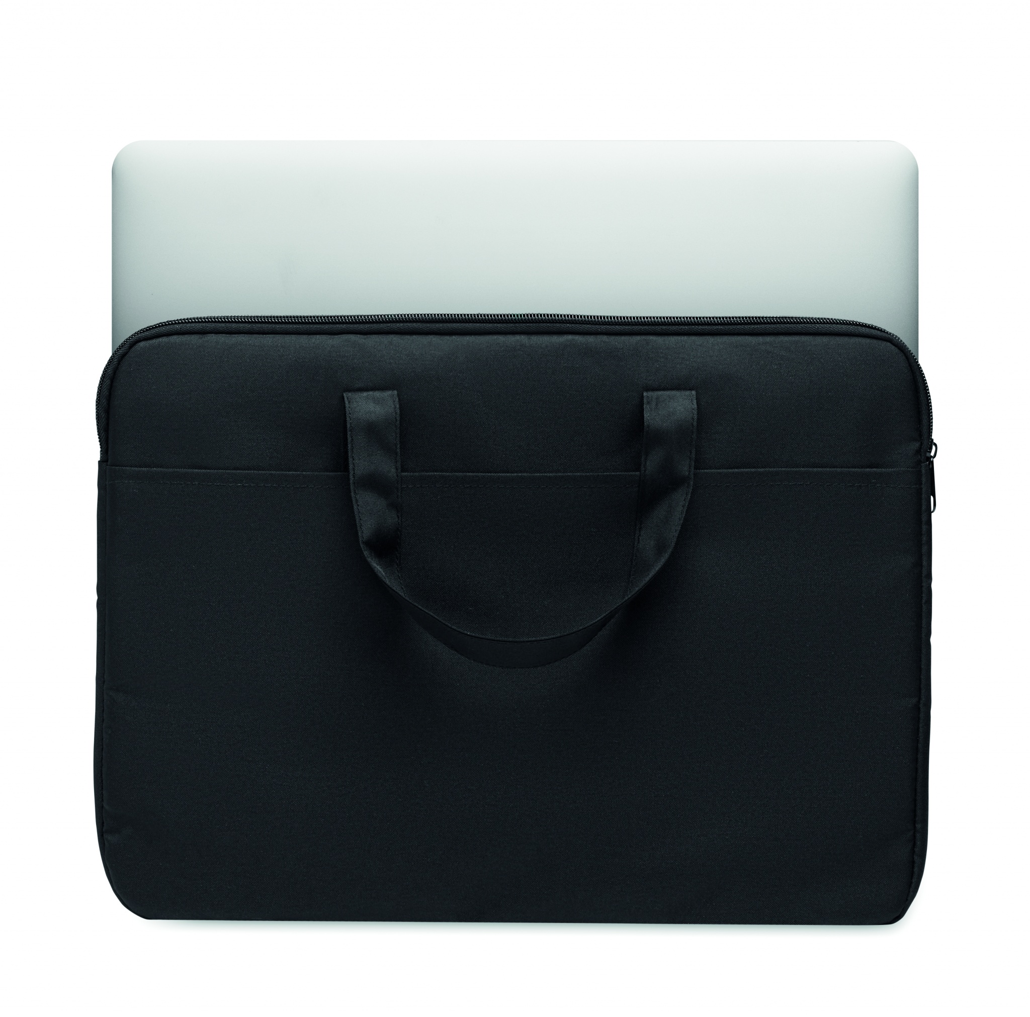 15'' laptopfodral i 300D RPET-polyester med handtag och rem för trolleyväska.