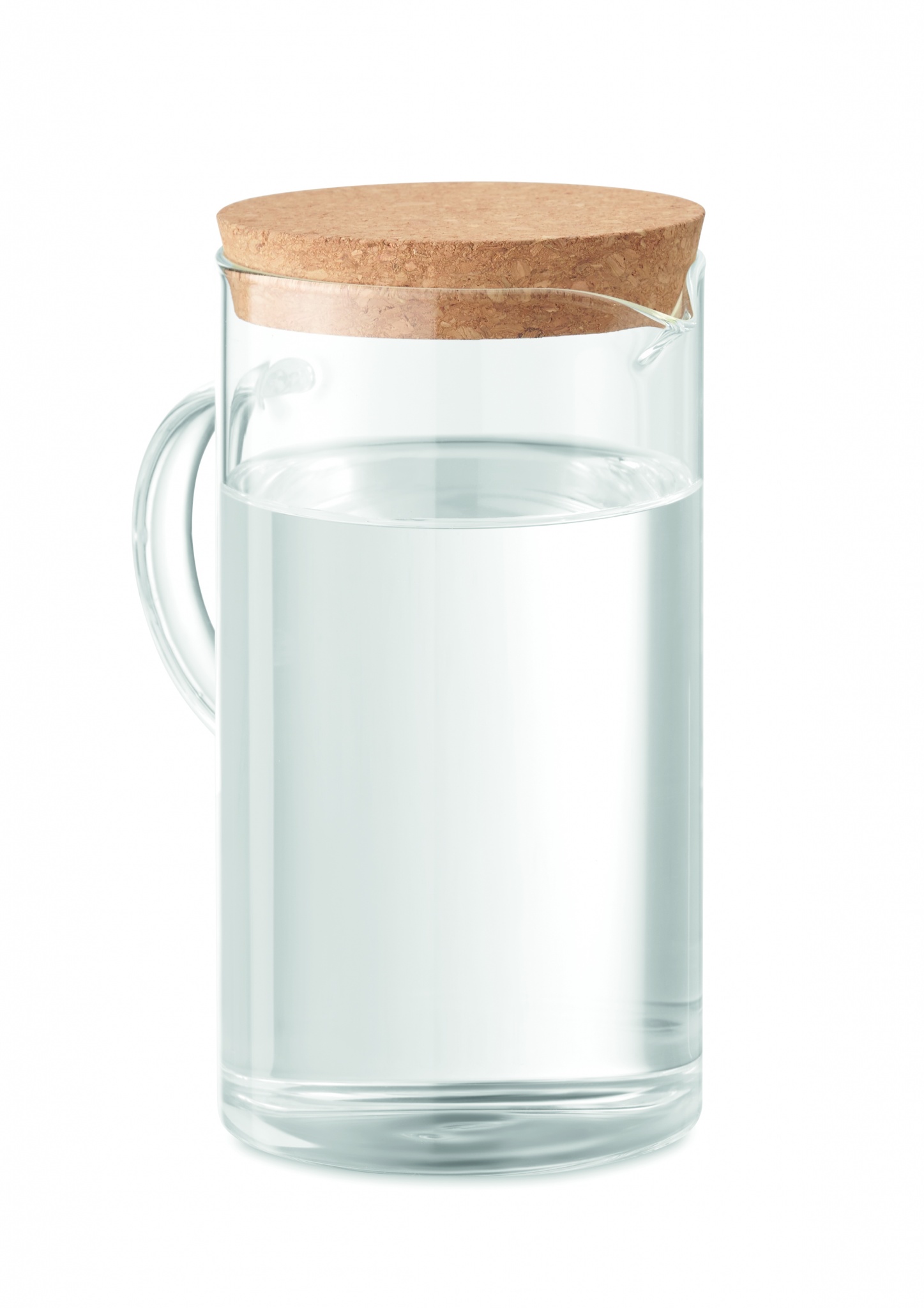 Karaff i borosilikatglas med korklock. Servera färskgjord juice, saft, vatten eller andra drycker i denna glaskanna. Eftersom det är tillverkat av borosilikatglas tål den varm eller kall dryck. Korklocket ger karaffen ett naturligt utseende. Volym: 1L.
