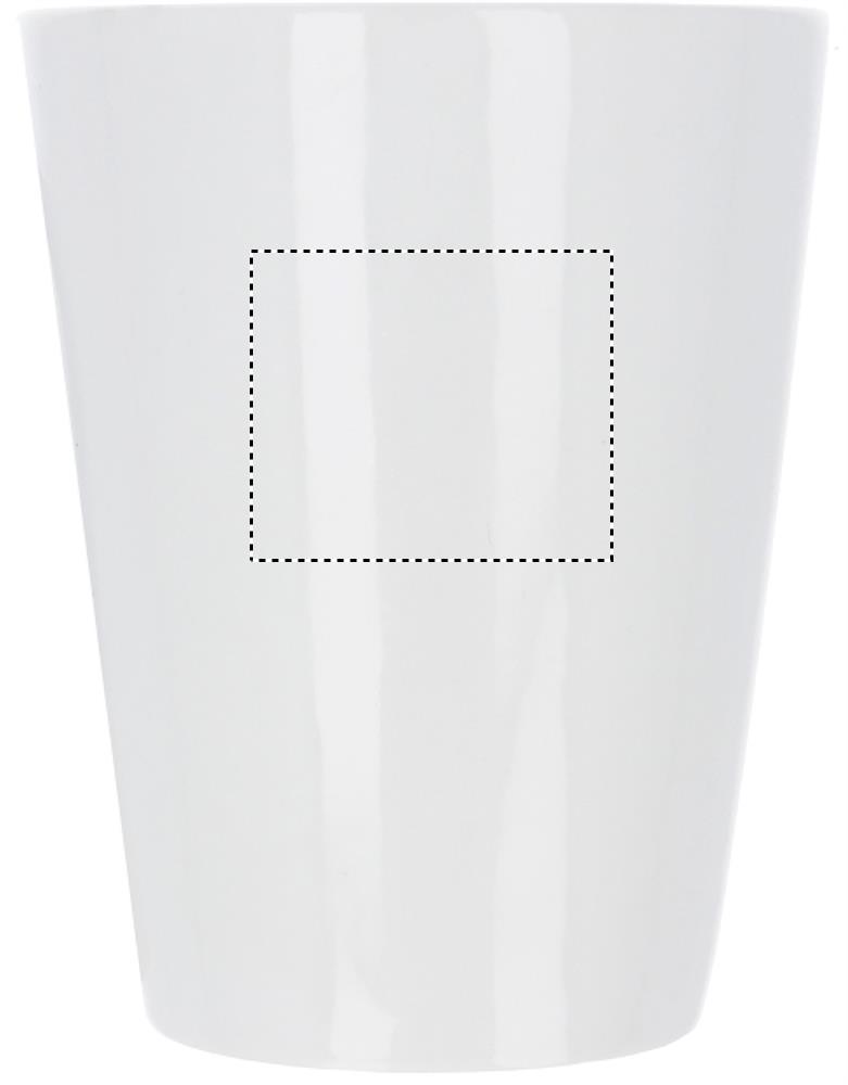 Porslinsmugg, konformad som rymmer 250 ml. Tampotryck tål ej diskmaskin. Keramisk transfer tål maskindisk. Levereras i bulkförpackning.