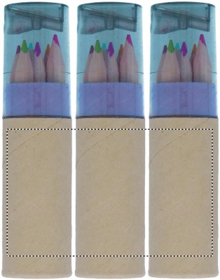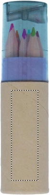 6 stycken färgpennor med pennvässare i locket.