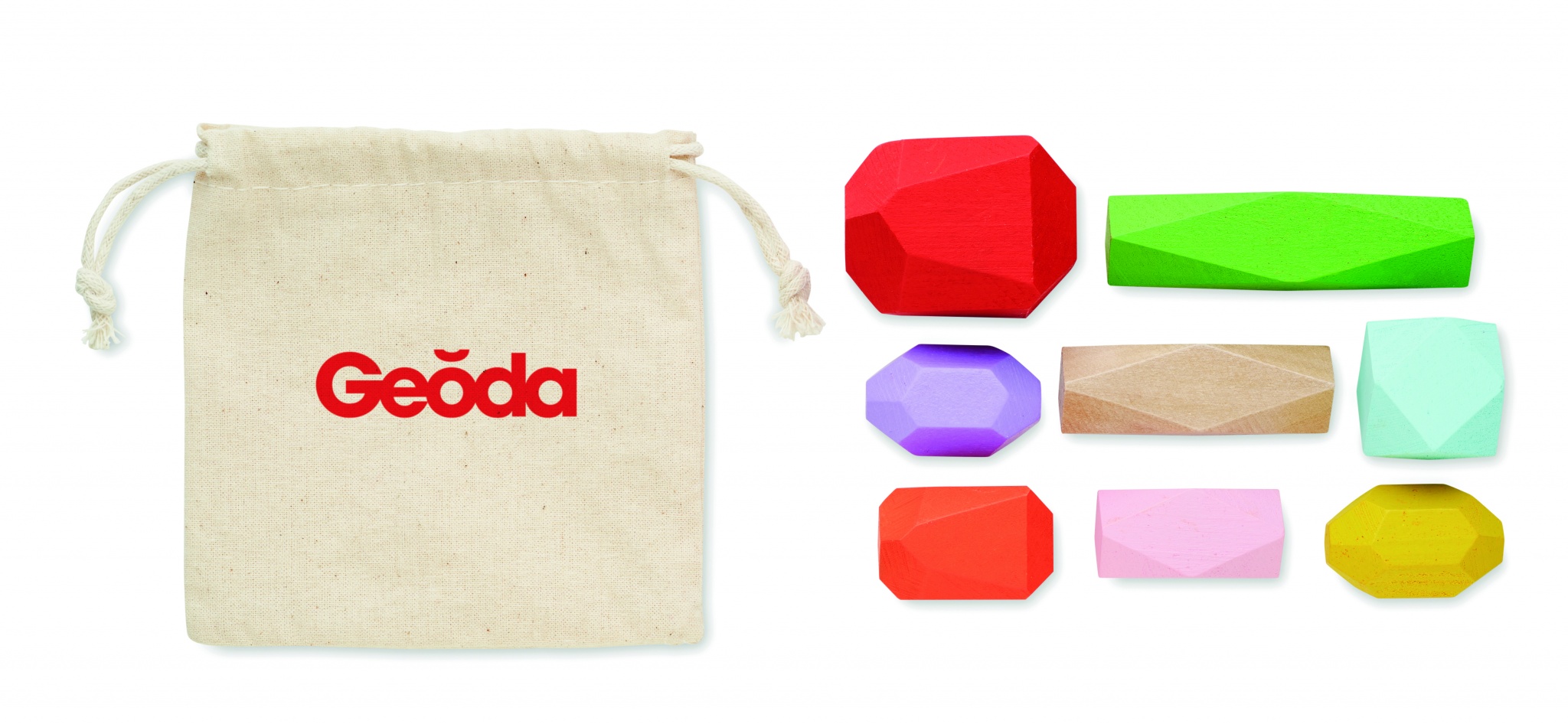 Logotrade kampanjprodukter bild: 8 stapelbara träklossar i påse
