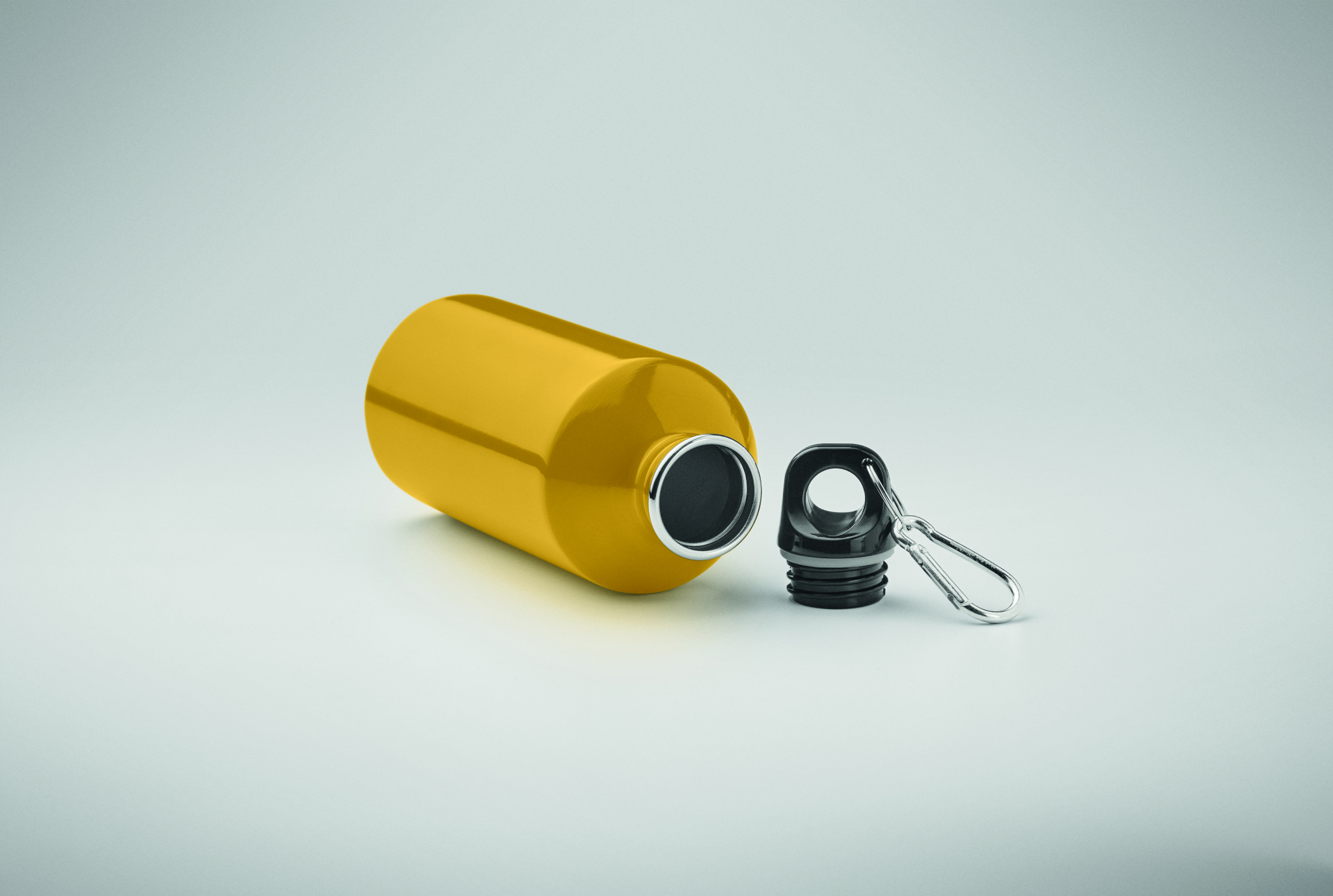 Enväggig flaska i återvunnet rostfritt stål (90% återvunnet rostfritt stål och 10% rostfritt stål) med karbinhake. 500 ml. Sublimeringstryck endast tillgängligt på vit artikel. Läckagefri.