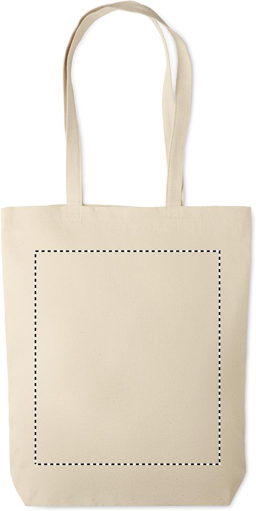 Tygkasse i kraftig bomullscanvas med långa handtag och bälg i botten. Kvalité: 270 gr/m².