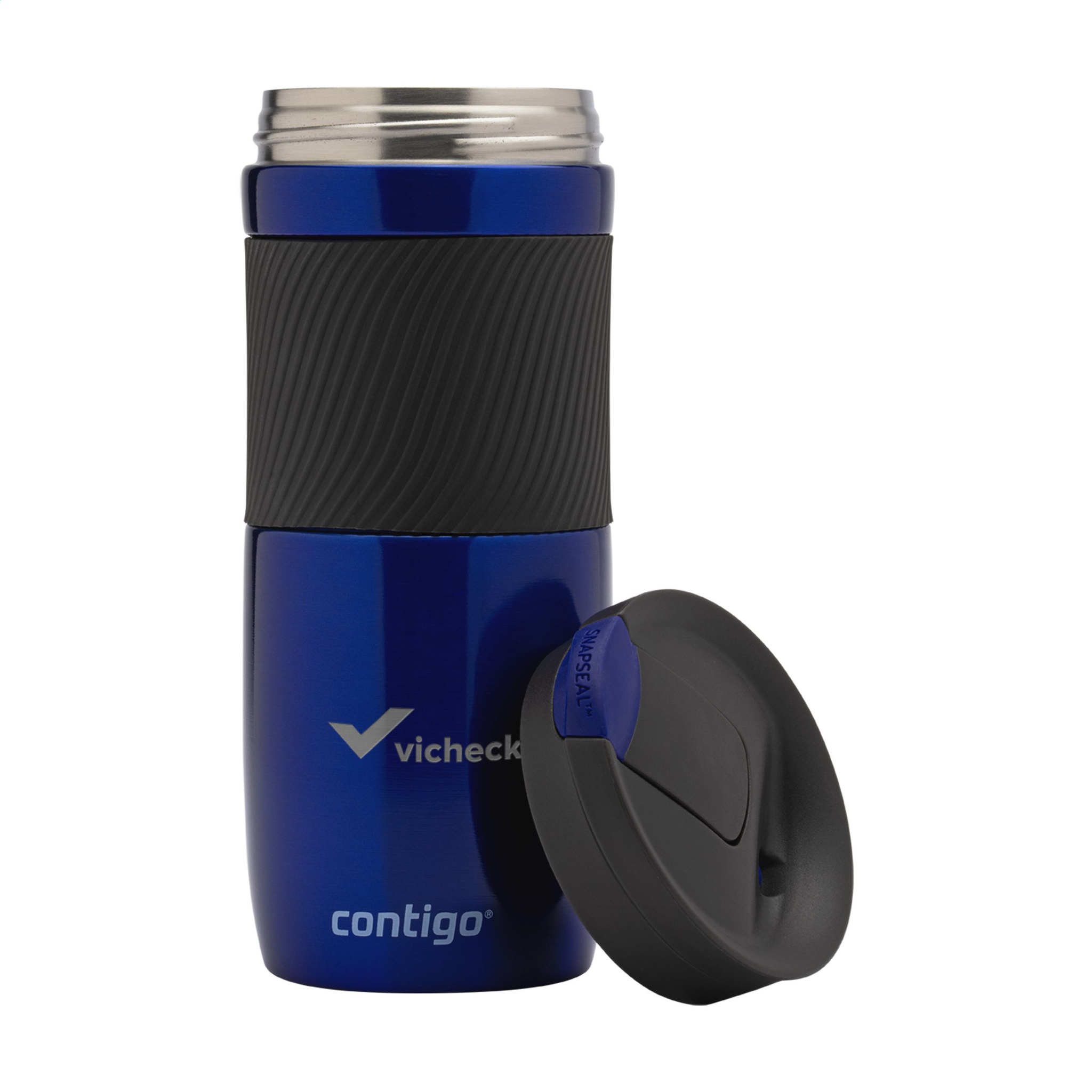 Dubbelväggig Contigo® termoskopp i rostfritt stål: vakuumisolerad, utrustad med ett stort, halkfritt gummigrepp och pip med SNAPSEAL®-teknik som gör den lätt att dricka. Klicka på knappen uppåt med en hand för att dricka och nedåt för att stänga koppen. 100% spill och läckagefri. THERMALOCK™-teknologin håller drycker kalla upp till 18 timmar eller varma upp till 7 timmar. Endast locket tål maskindisk. Kapacitet 470 ml. LAGER TILLGÄNGLIGT: Upp till 1000 st tillgängliga inom 10 arbetsdagar plus standard leveranstid. I mån av tillgång. Contigo® Det bästa inom kvalitet, design och teknik. Känns omedelbart igen på sin snygga och snygga design, stark och rejäl. De innovativa Contigo vattenflaskorna och termokopparna är luktfria, smaklösa och BPA-fria. Dricksflaskorna manövreras med en hand och är garanterat 100% läcksäkra, så de kan användas var som helst, när som helst, även på språng. Levereras med 2 års tillverkargaranti.
